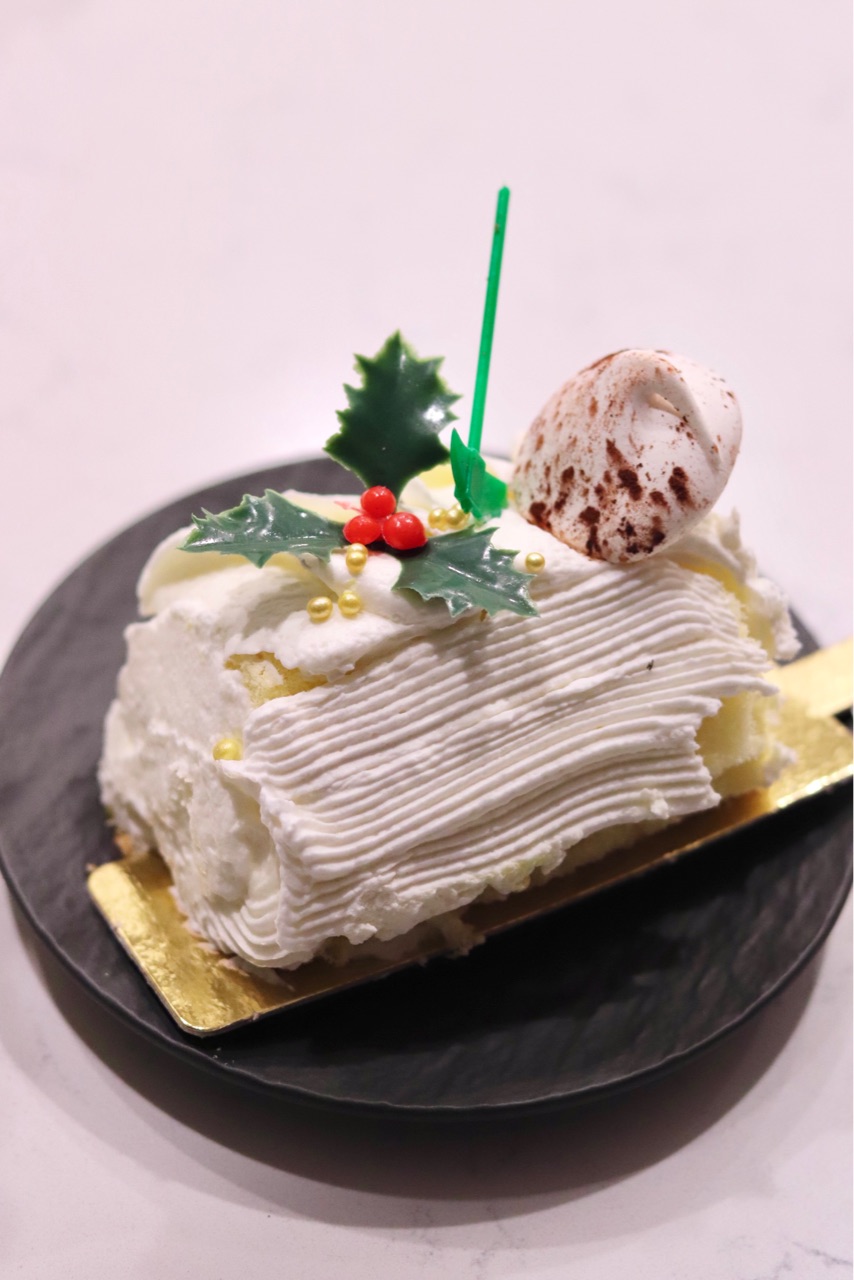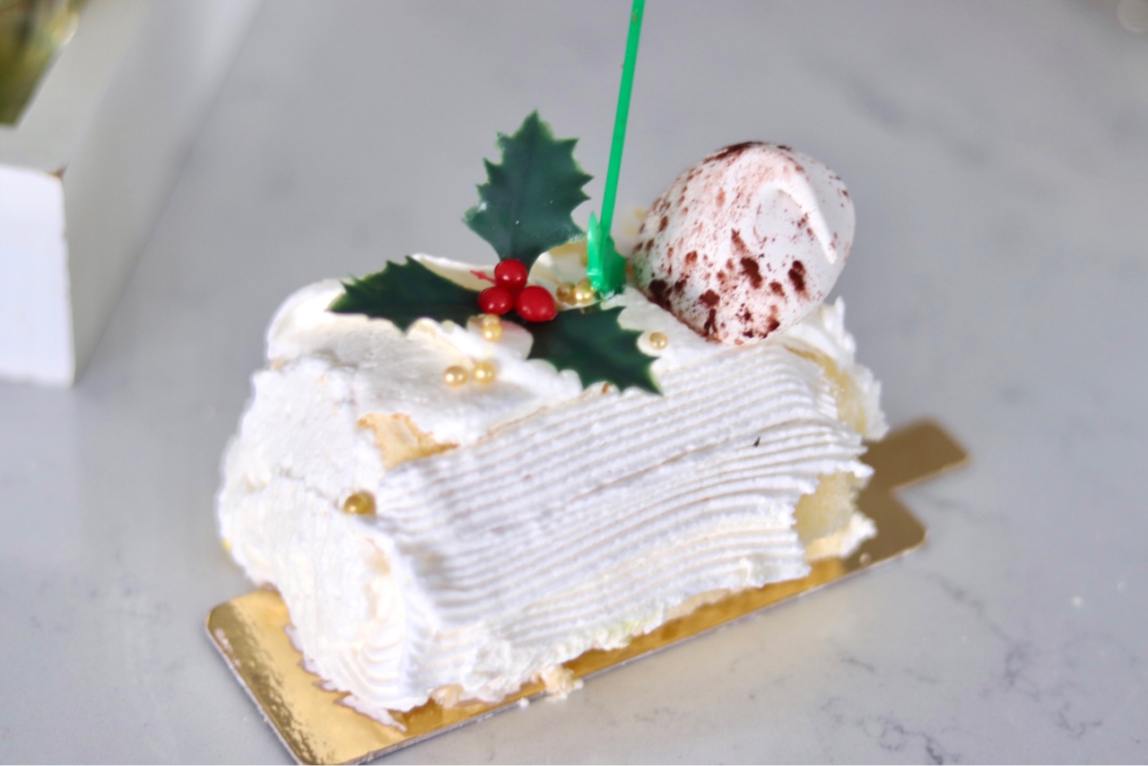 クリスマスの日に食べるために、ブッシュドノエルのバニラフレーバー↓