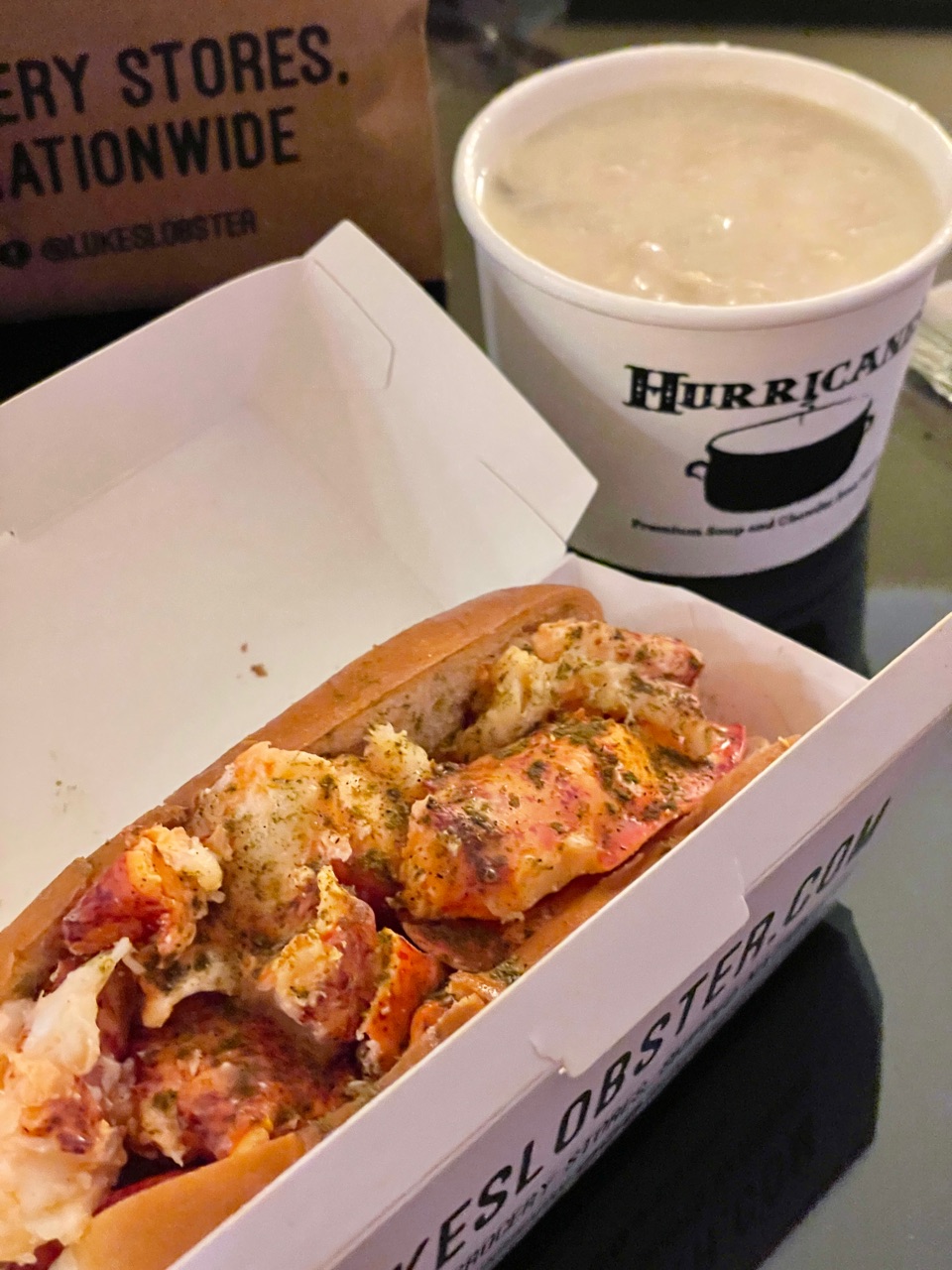(4 ozのロブスターロール$24、クラムチャウダー$6、ドリンク$2)