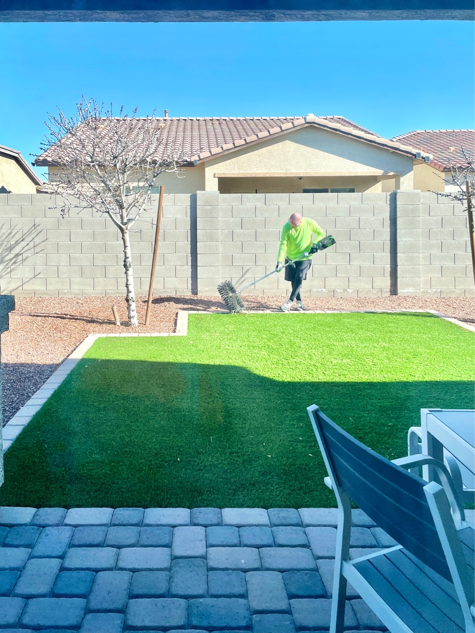 以前ブログにポストしましたが、また人工芝のクリーニングを同じ業者さんに来てもらいました。