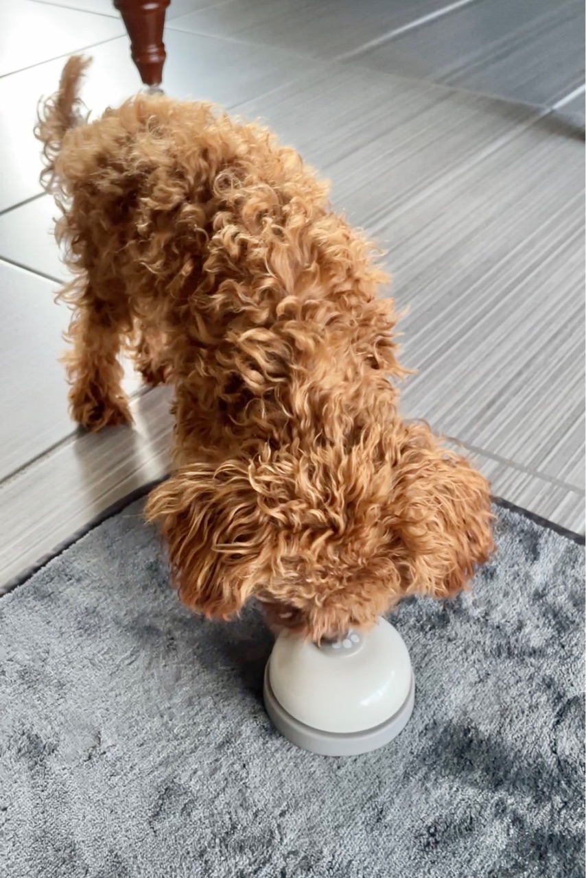 ダフィーやシェリーメイが外でトイレしたい時、気がつかない時がありますが、この”チーン”を鳴らしてくれれば「あ!トイレ!🐶」と気がつくので購入して良かったです🛎