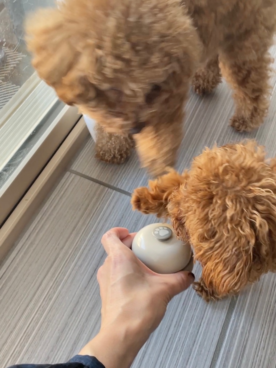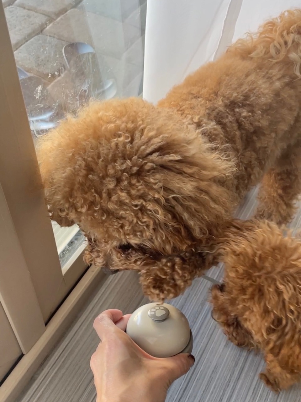 ダフィーは、外に行きたいときはただ窓の所に立って、私に”外に行きたいアピール”をする時がありますが、私が「チーンは?」と言うと、ちゃんとプッシュベルを鳴らしてくれます👏