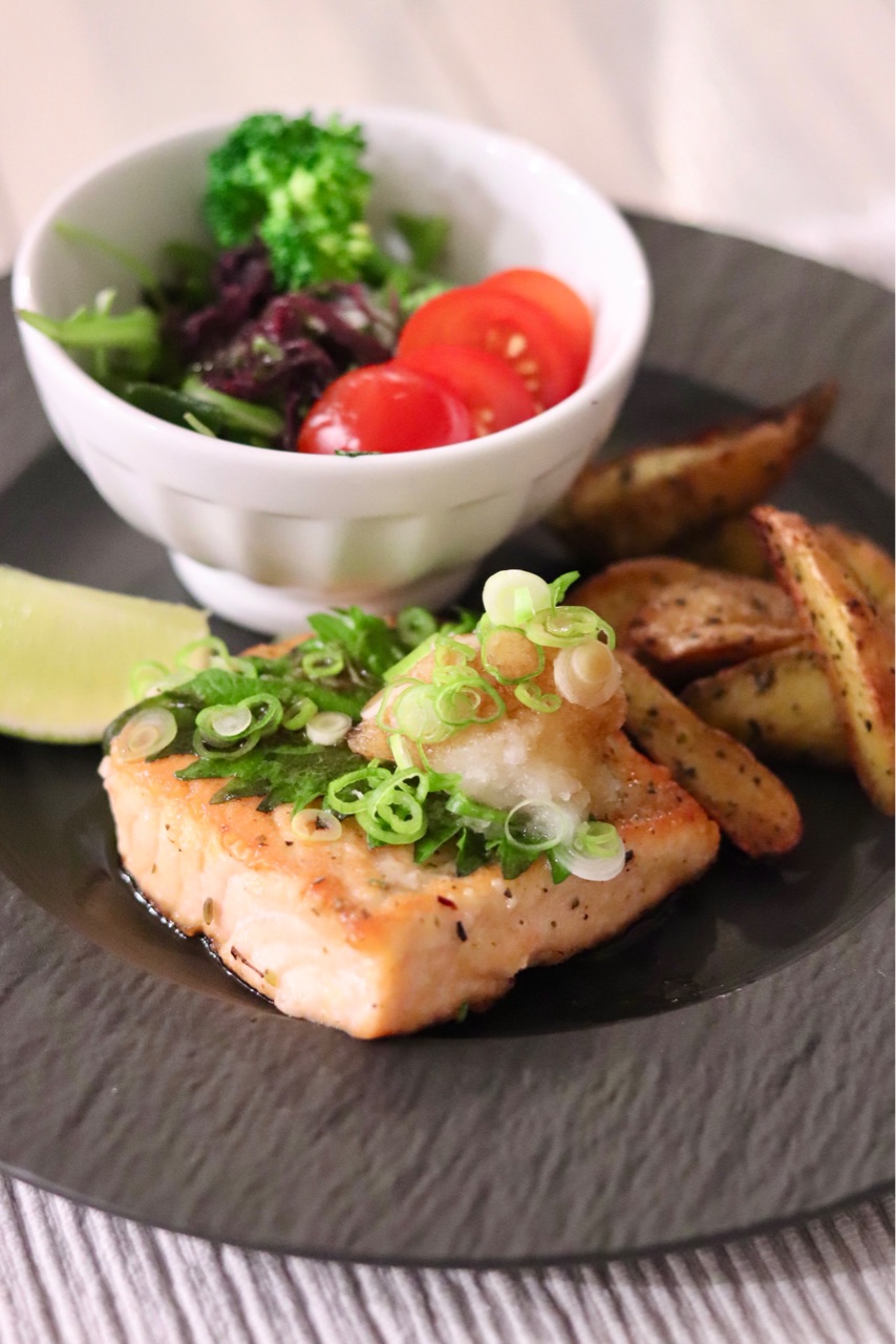 ちなみにこの日は、サーモンを味ぽんと大根おろしでいただきました🐠