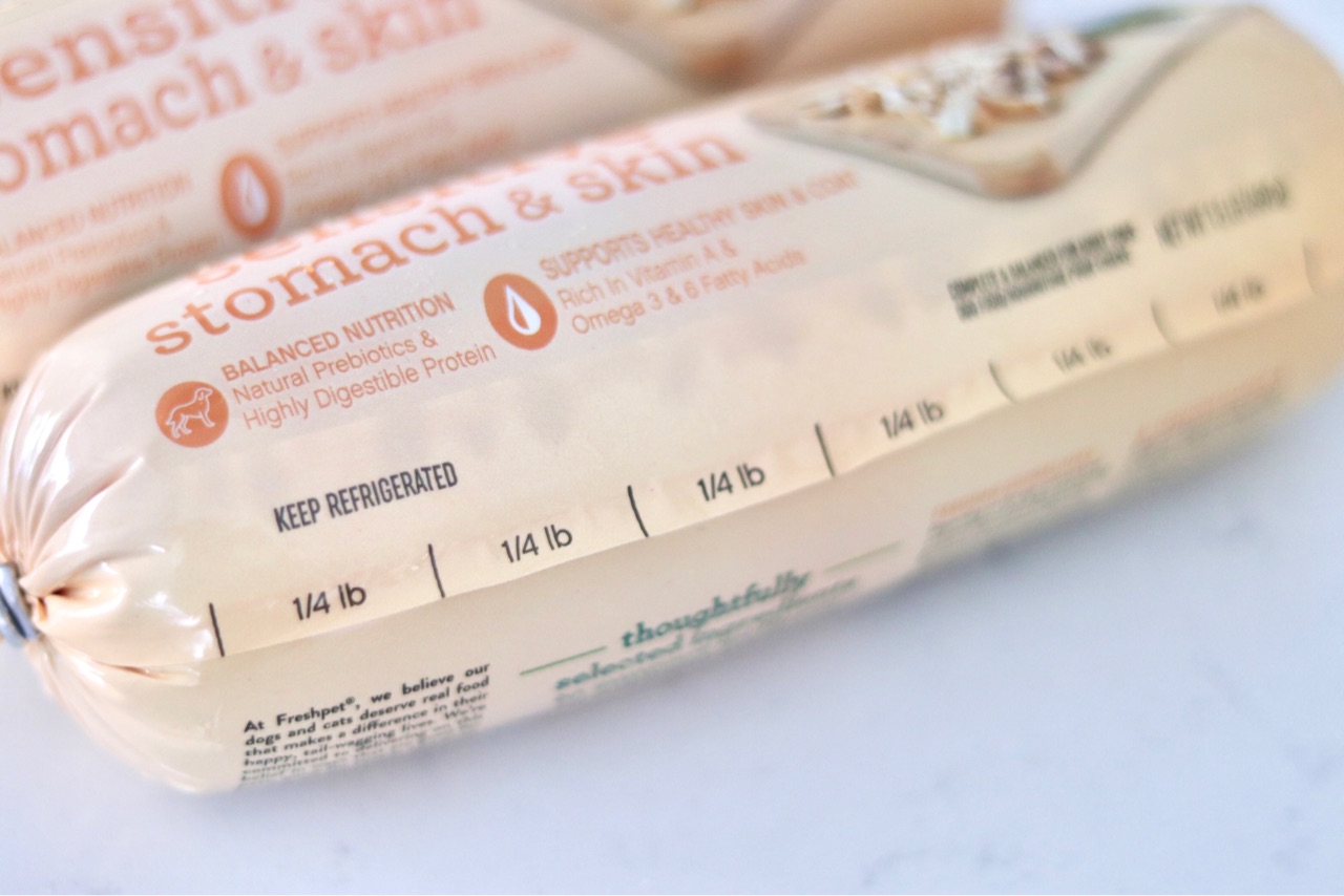 freshpetというブランドから販売されている、冷蔵食品の胃や肌が敏感な犬用の”sensitive stomach & skin”。