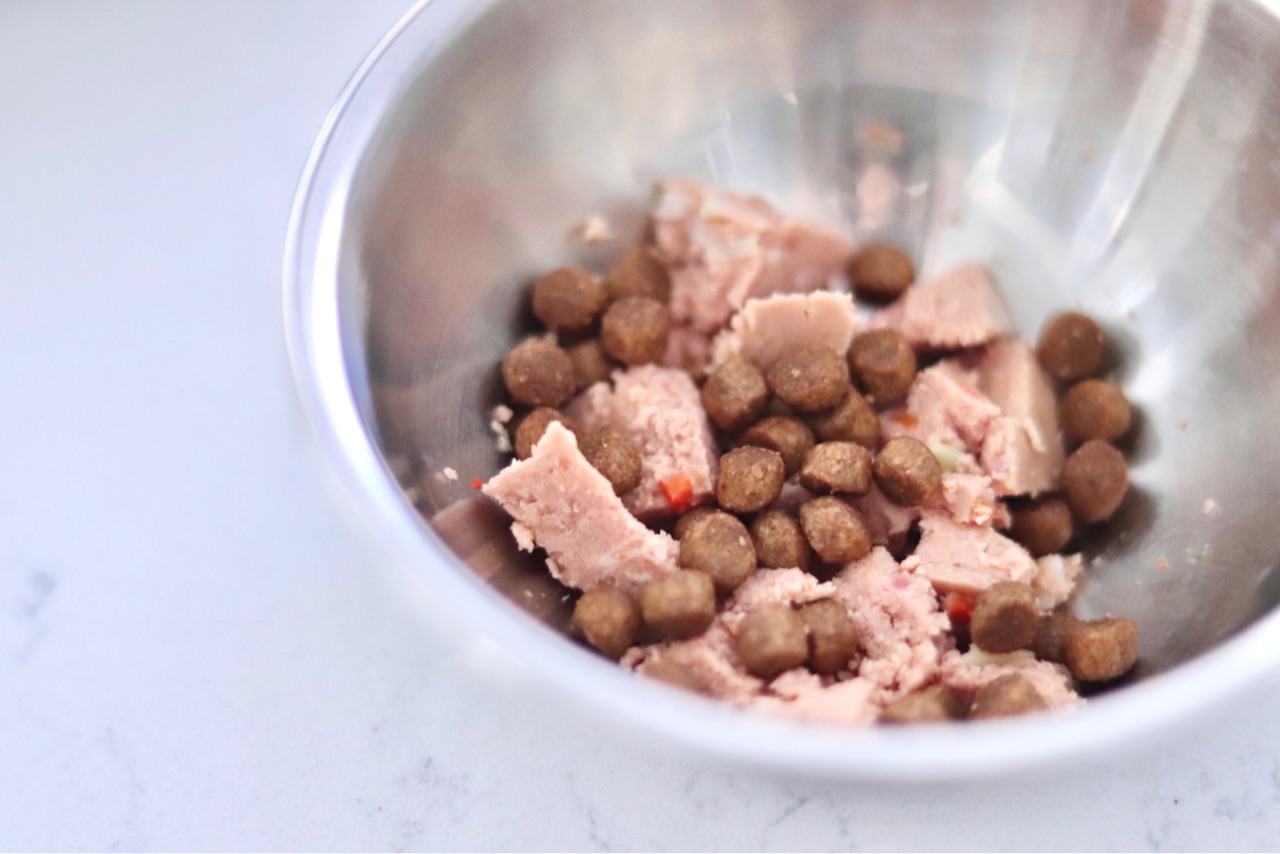 これだけだと、ソフトなものなので歯が弱くなってしまうのが心配なので、ドライフードも一緒に混ぜて与えています。