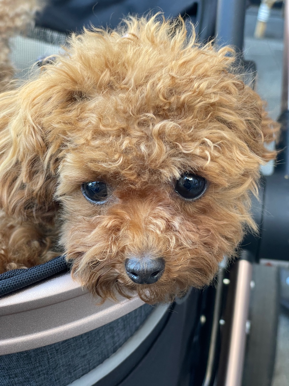 なかなか写真を撮らせてもらえなかったのですが(トイプードルの1歳4ヶ月は、人間年齢で15〜16歳なので反抗期時期?w)...