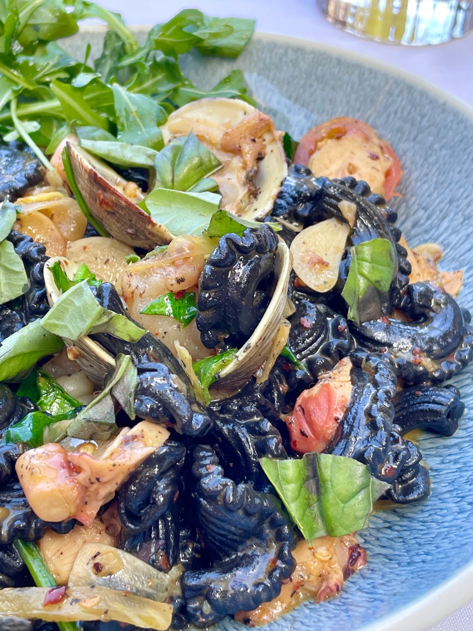 シーフードパスタなんですが、メニューにはcreste de gallo(実際はcreste di gallo?)としか書かれていなかったのですが、イカスミのパスタでした👏