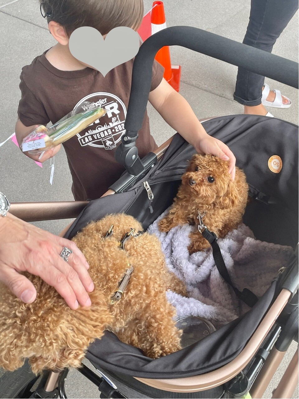 並んでいる時に、可愛い男の子に愛犬たちは相手してもらい…↓