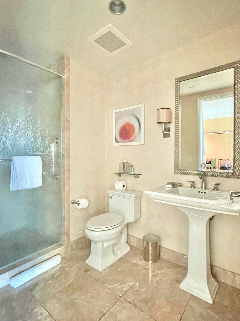コーナースイートには、マスターバスルームに窓がついているので、明るいのも👍↓