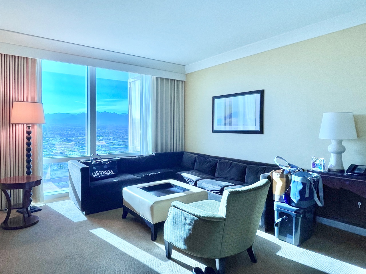トランプホテルラスベガスの部屋や家具は少し古いかもですが、やっぱり安価でスイート+ペットと一緒に滞在できるのは、かなりお得!