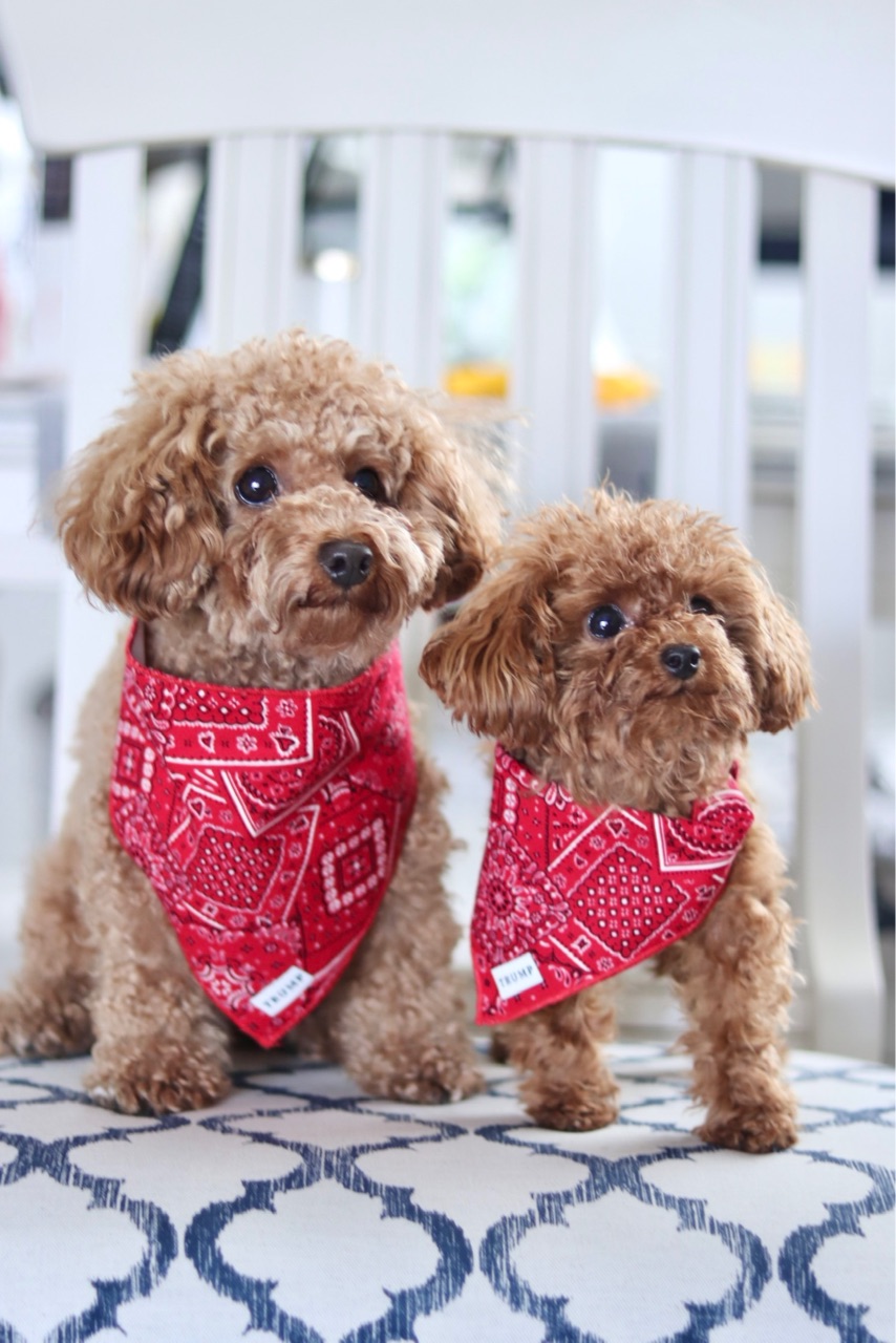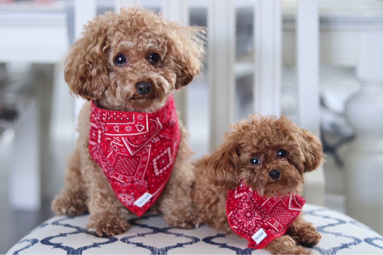 色々なペットショップに行く際、毎回の様に愛犬2匹がお揃いで付けられるバンダナを探しています。