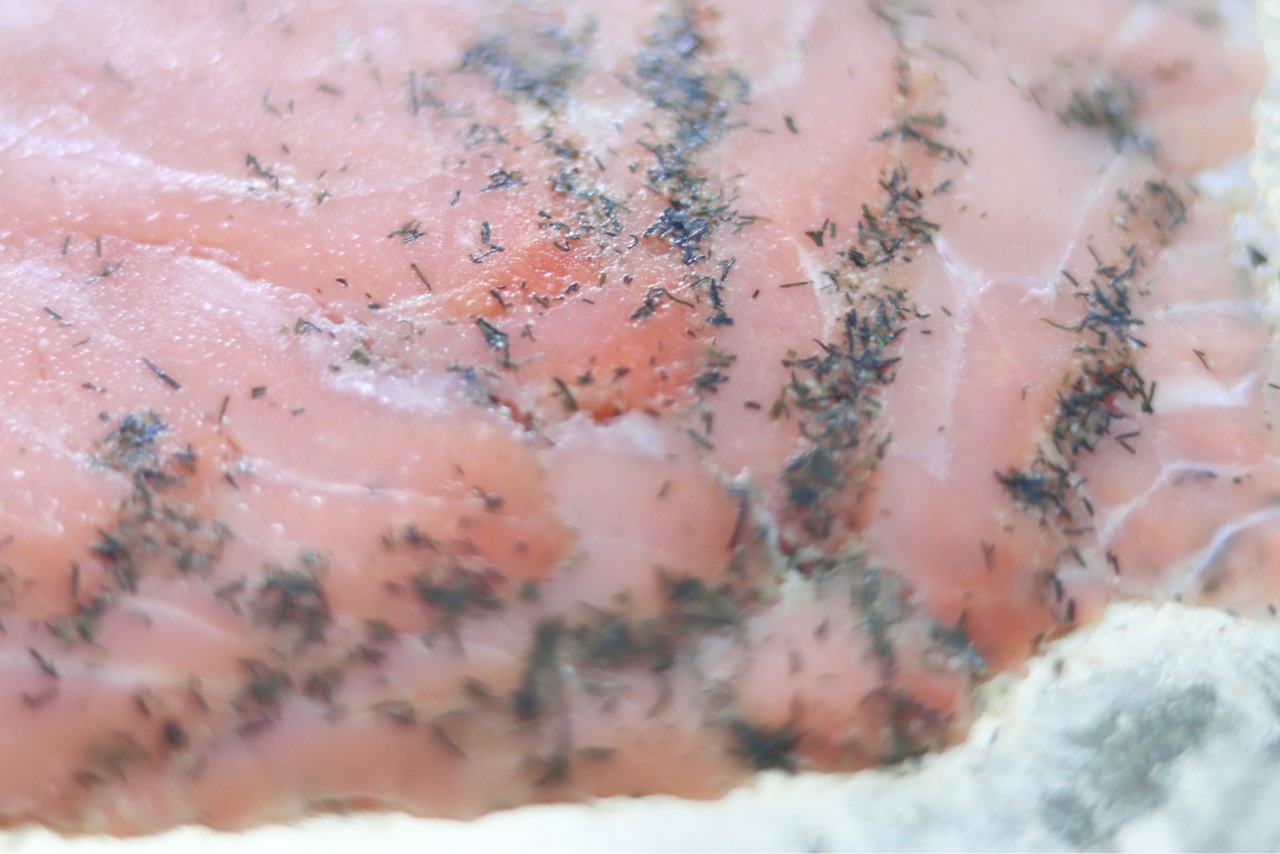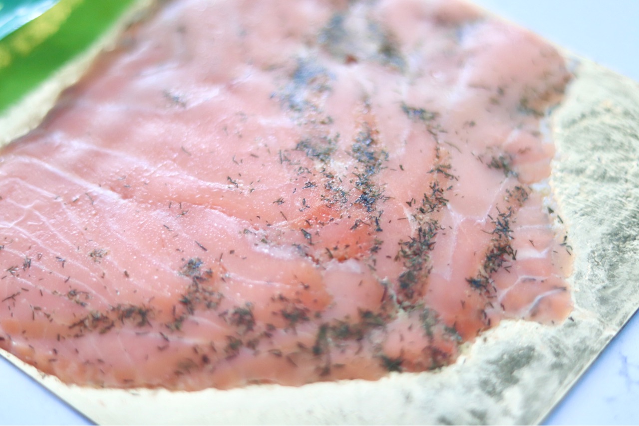 ディルピクルスフレーバーの、スモークサーモン(アトランティックサーモン)。