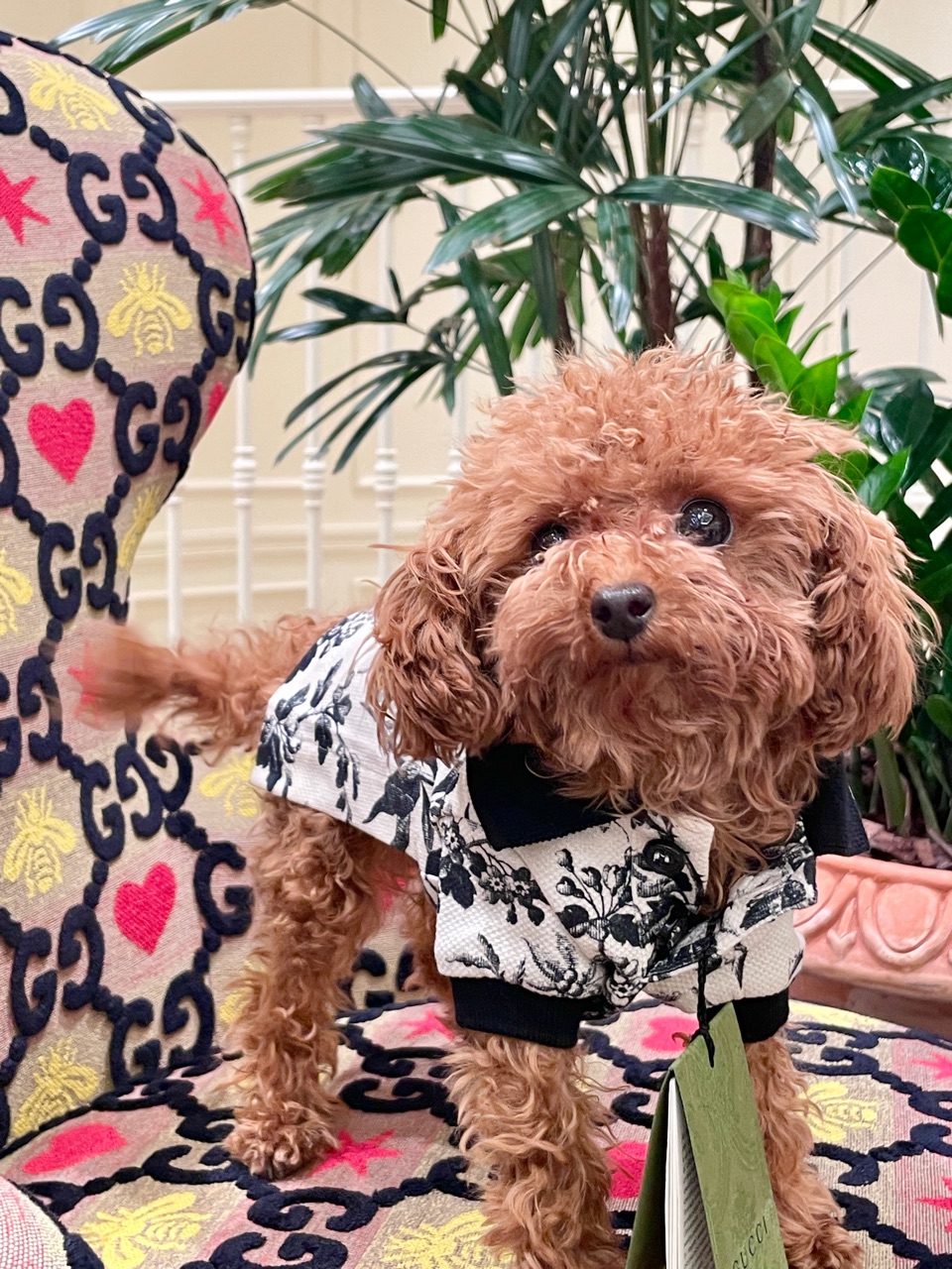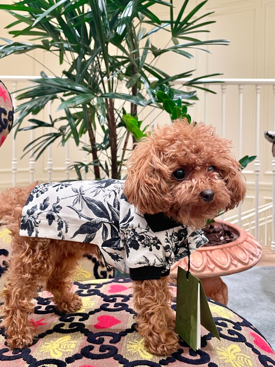 GUCCIのペット用のシャツは、XXXSから取り扱いがある事に驚きました。