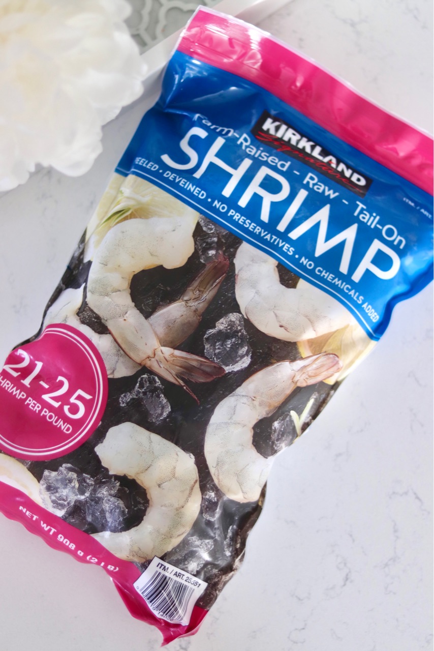 料理をする前に、使う分だけ冷凍海老をぬるま湯で解凍すると、10分弱で準備ができるので、本当便利。