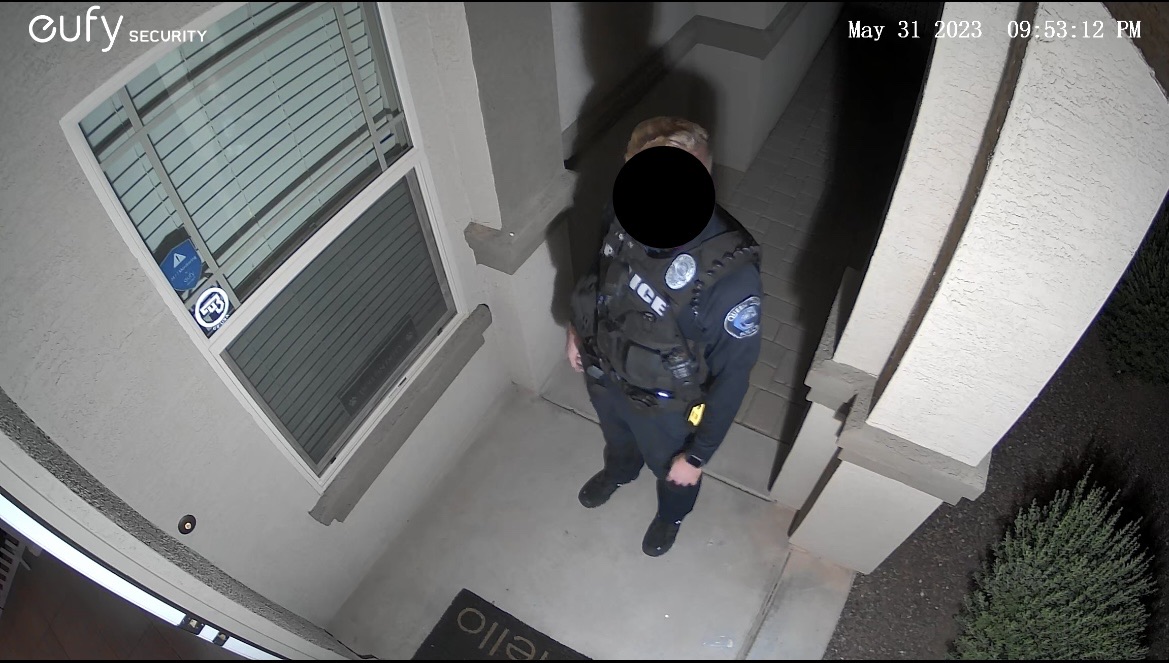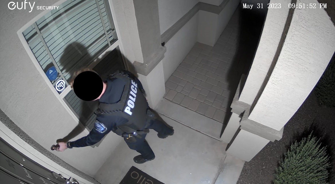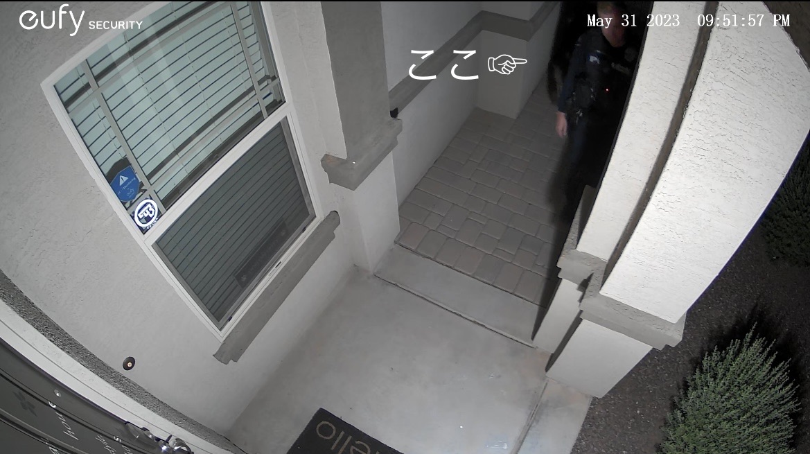 急いでスマホから録画をチェックして、ようやく警察官だと確認して、夫は玄関ドアを開けました↓