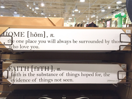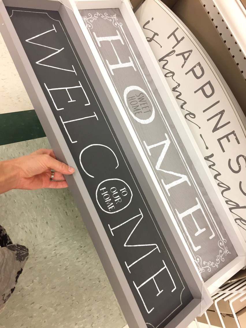 ジャスティンが最近、エントランスに飾るwelcome signが欲しいって言っていたんですが、Joannに白とグレーの感じのサイン、前見た気がするな...