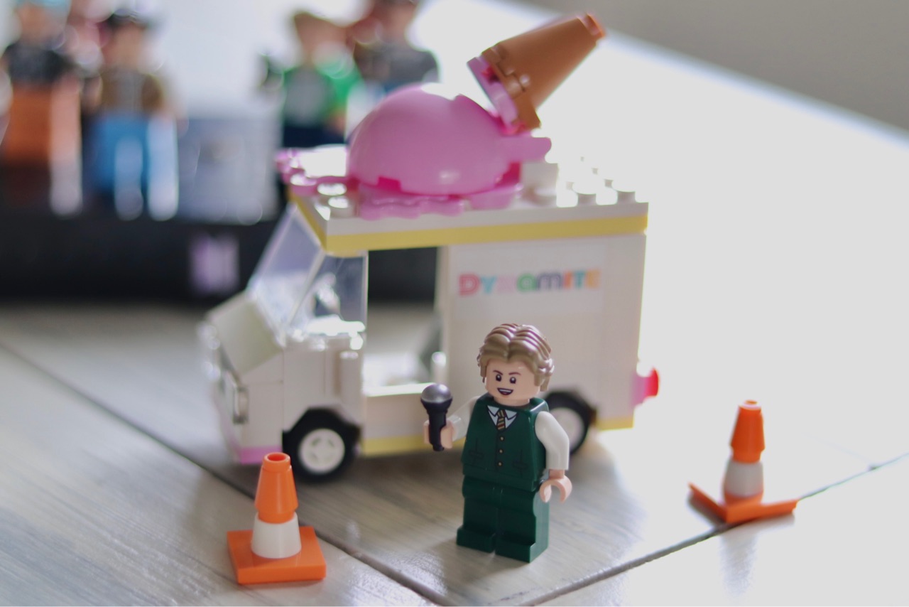 LEGOが組み立て終わってから、夫にBTSの“Dynamite”のミュージックビデオを見せた所、そのまま再現されてるLEGOにかなり驚いてました😂