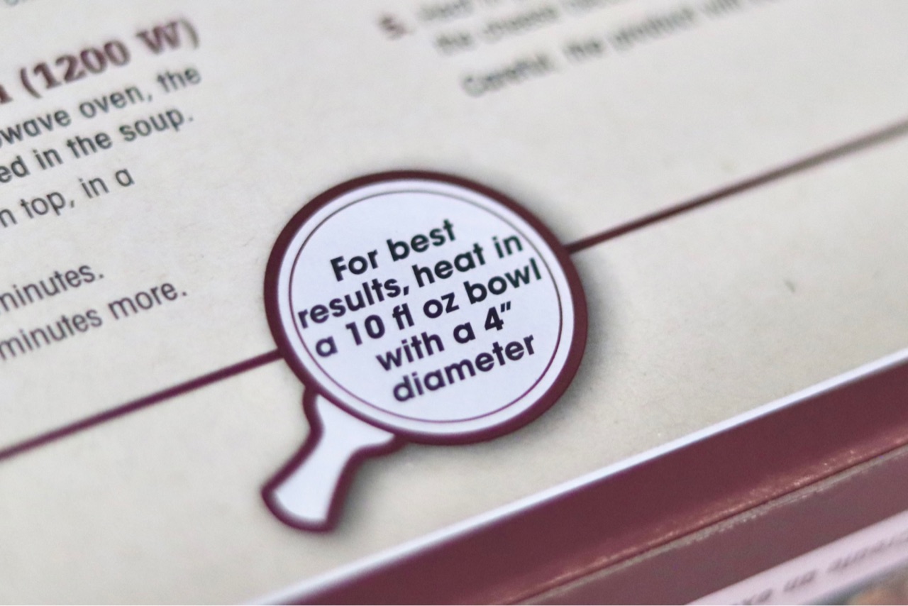てっきりオーブンOKの器に入っているとばかり思っていたら、箱に10 oz(約296ml)と直径4インチ(10cm)の大きさのカップが必要と書かれていました↓