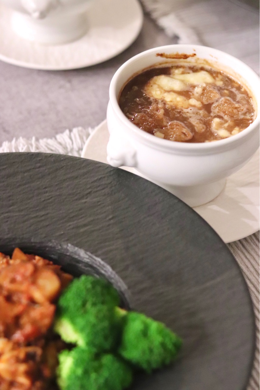 こちらのフレンチオニオンスープを使って、お料理のアレンジも👍↓