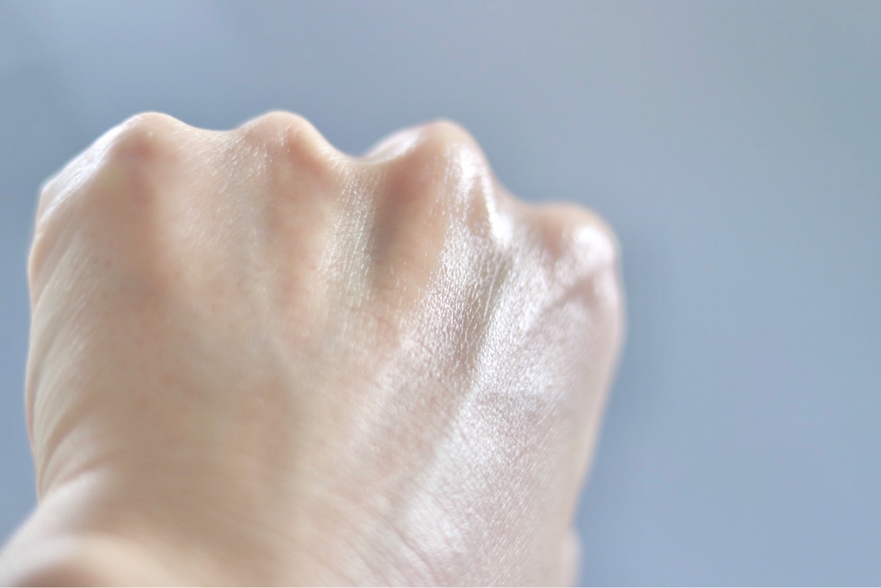 Glow Liquid Moisturizerと書かれているだけあって、塗った後は肌がかなり保湿され、めちゃくちゃ肌が光る↓