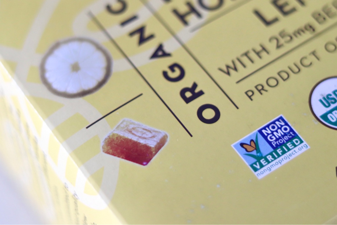 ingredientは、ケーンシュガー、マヌカハニー、ブラウンライスシロップ、レモンオイル、ユーカリプスオイルとプロポリスのみ。