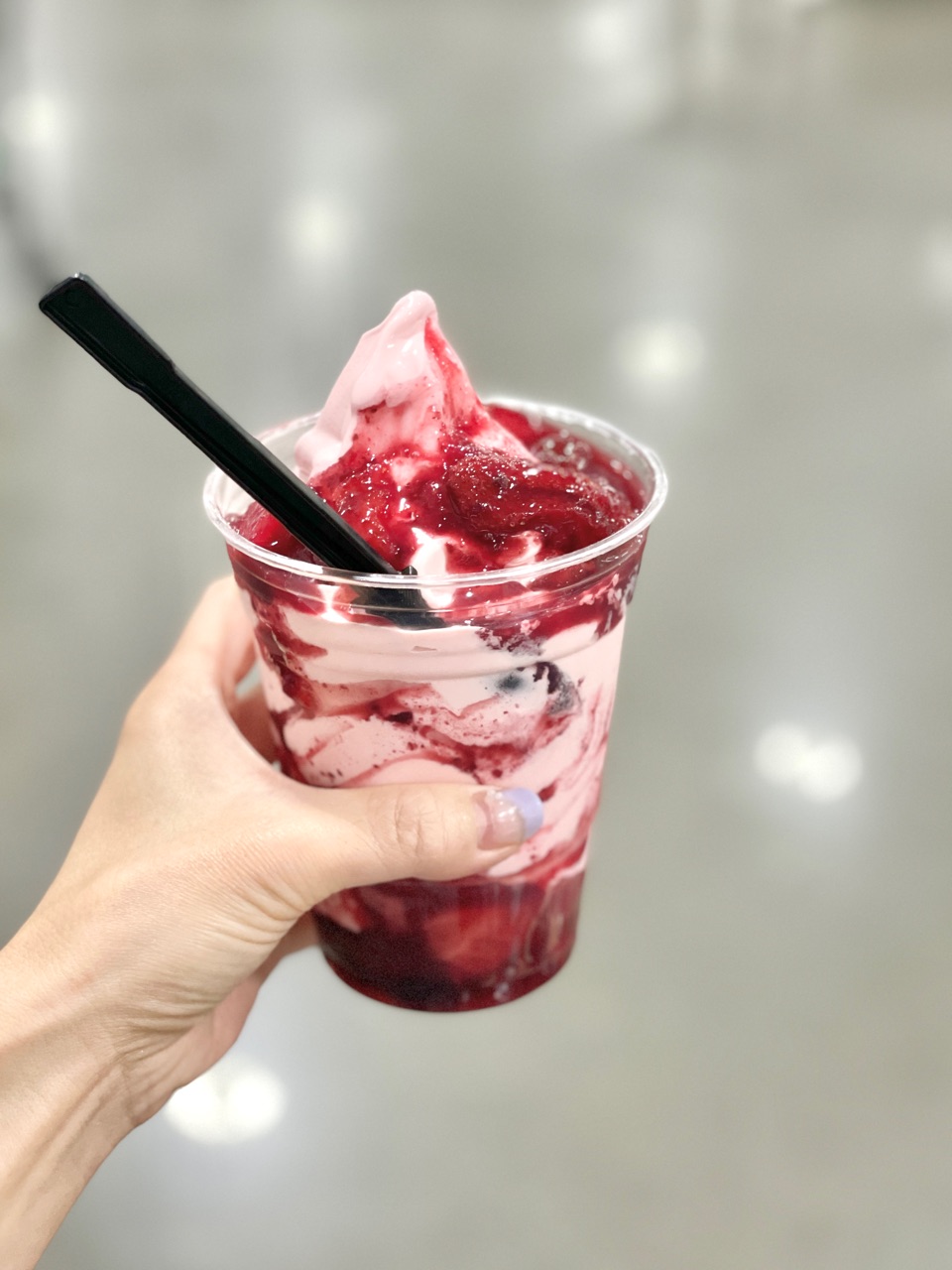 帰りは、ホットドッグ(ドリンク付きで$1.99)とストロベリーサンデー($2.99)を🍓