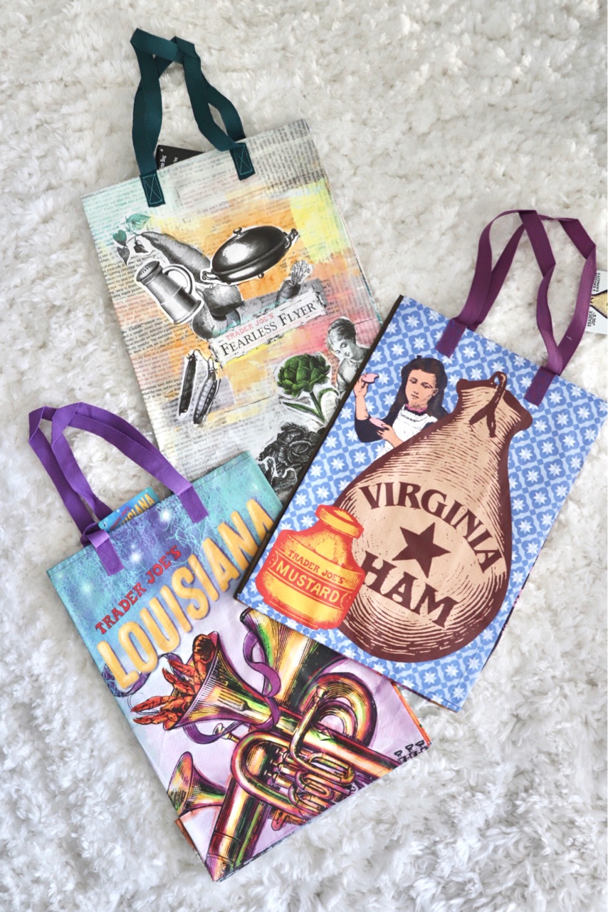 まずは、先日ブログに書いた、トレジョ(Trader Joe's=アメリカで人気のプライベート商品を扱う小型スーパー)で限定で販売された、折りたたみ式のエコバッグ(folding reusable micro bag)↓