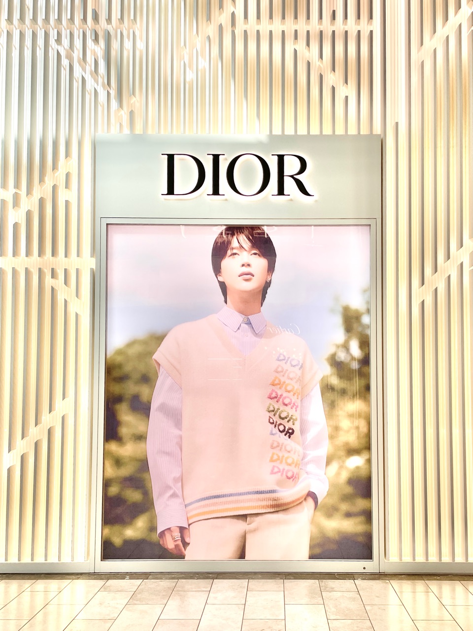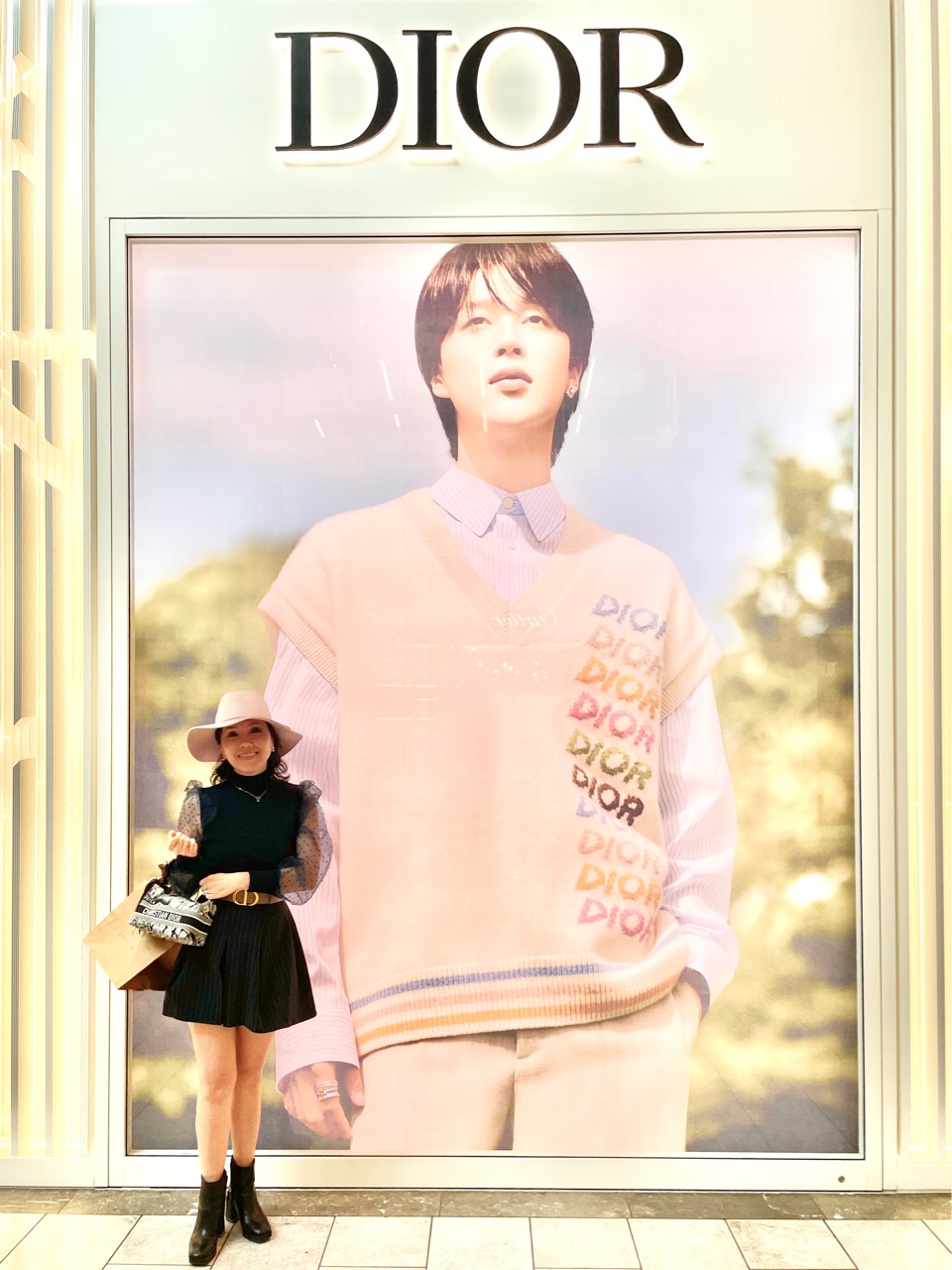 Neiman Marcusを出た所には、DIORブティックがあるのですが、巨大なDIORアンバサダーのジミンちゃん(BTS)が💜↓