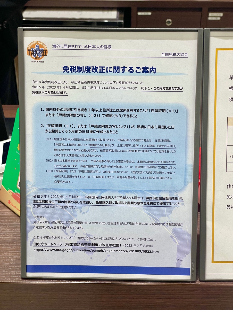 海外在住者の日本人にとって、免税が面倒になりましたが、本来非移住者は払わなくても良い消費税10%が免税になるのはありがたいです。