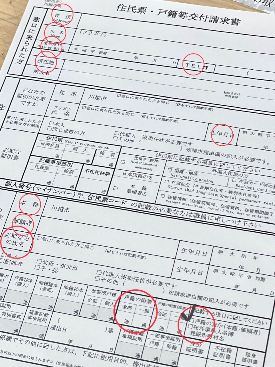 ”戸籍の附票“を取り寄せ時に1番注意が必要なのは、本籍を記載してもらう事!