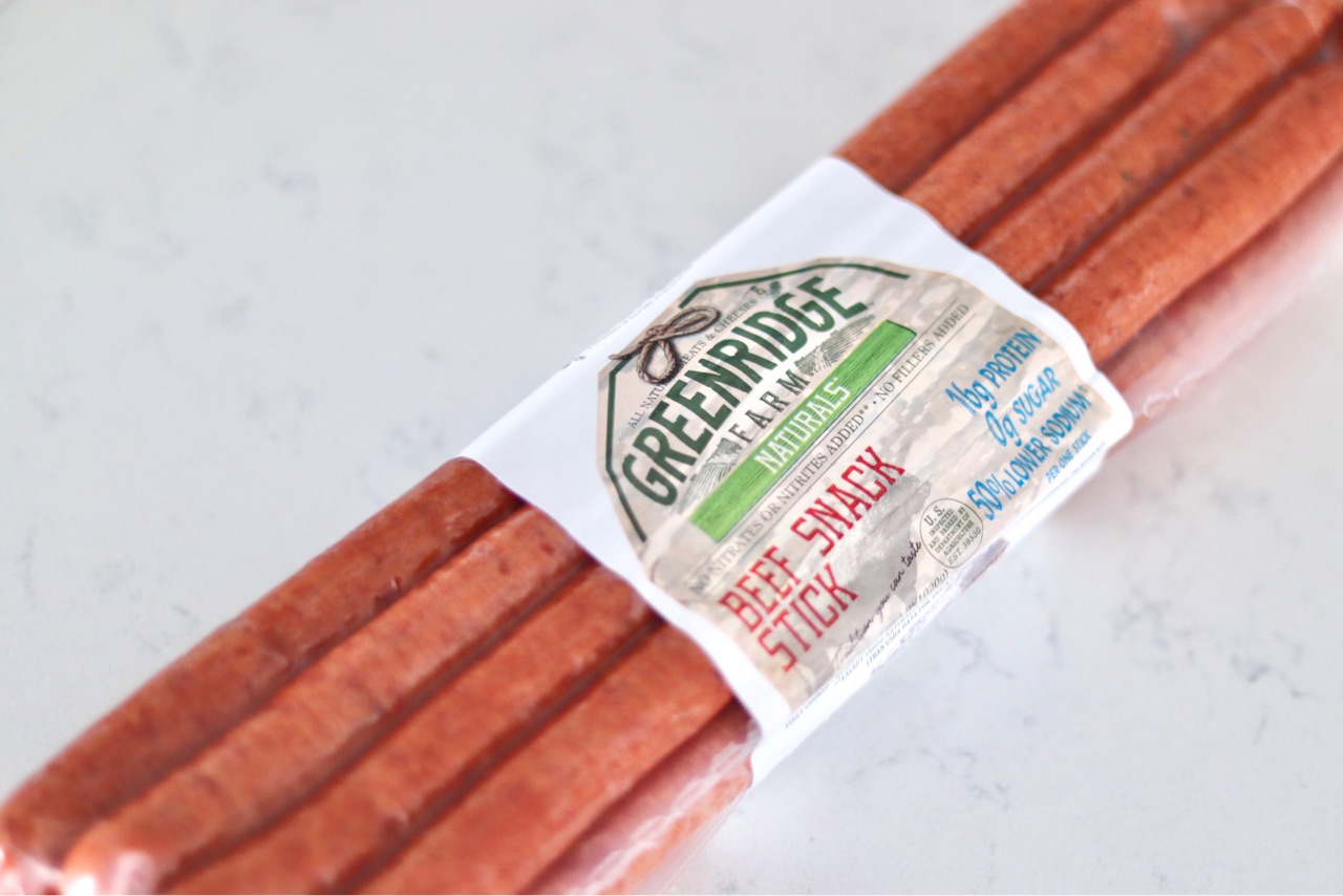 Greenridge Farmという会社から発売されている、Beef snack stickソーセージ($15.49)↓