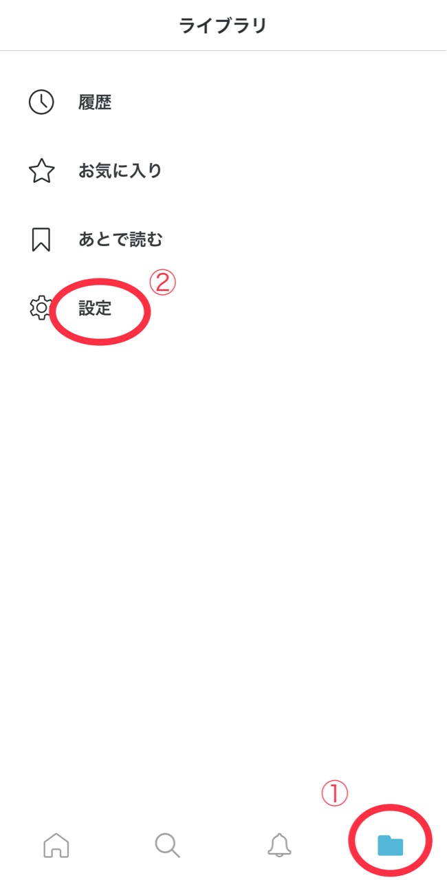”ライブラリー“→“通知”(②)をタップ↑