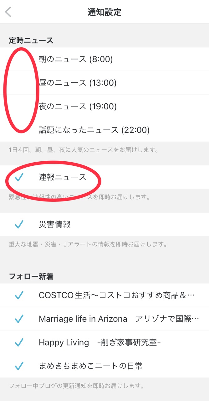 これは私のオススメですが、”速報ニュース“はチェックしたままが良いかと思います☑︎
