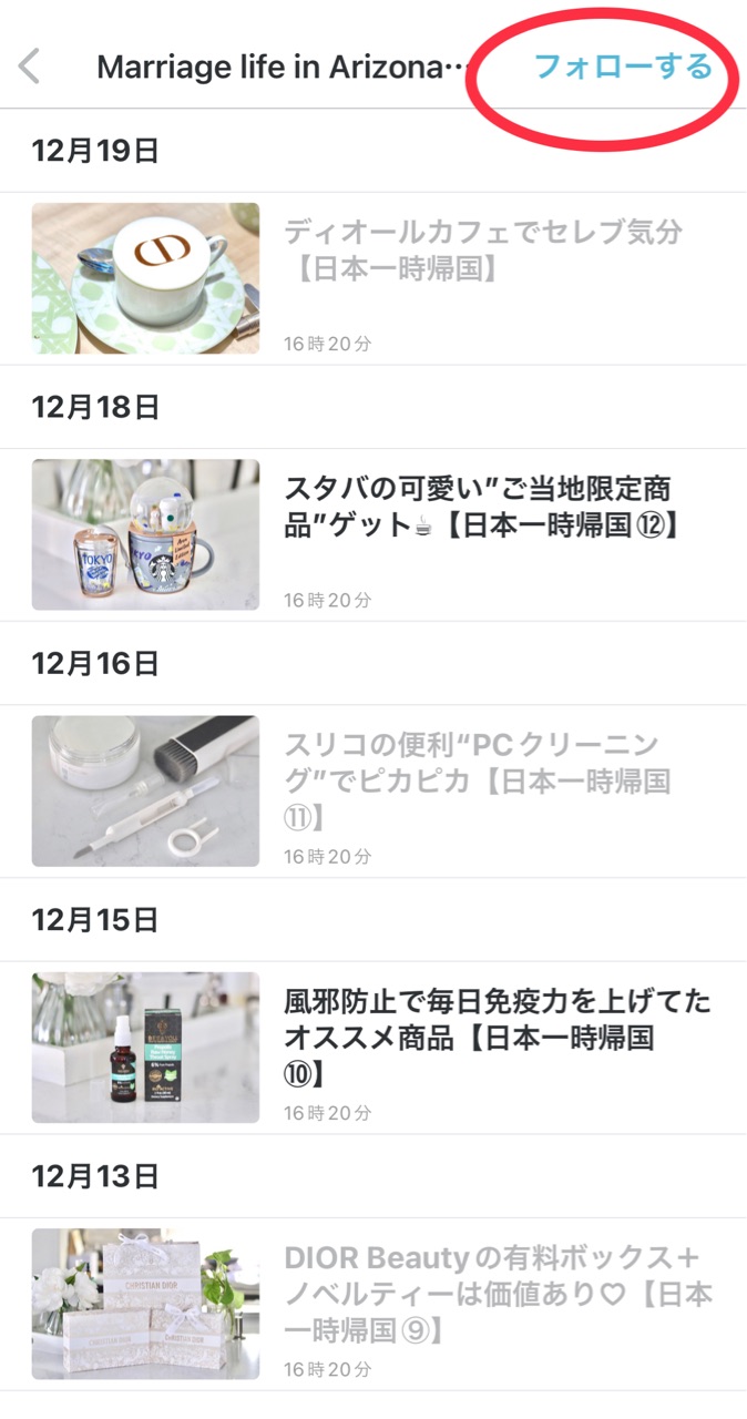 タイトルをタップすると、私にブログに飛ぶので、”フォローする“をタップすると、読者登録をする事ができます↓