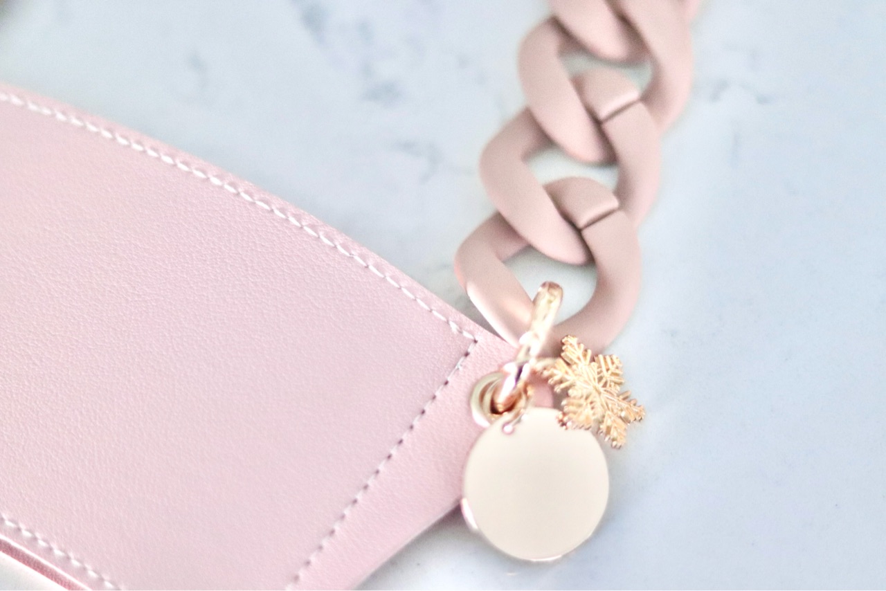 今回購入したリユーザブルスリーブは合皮なので、もしコーヒーが付いてしまっても拭けば綺麗になるし、チェーンはプラ製の太いものなので、重くても大丈夫。