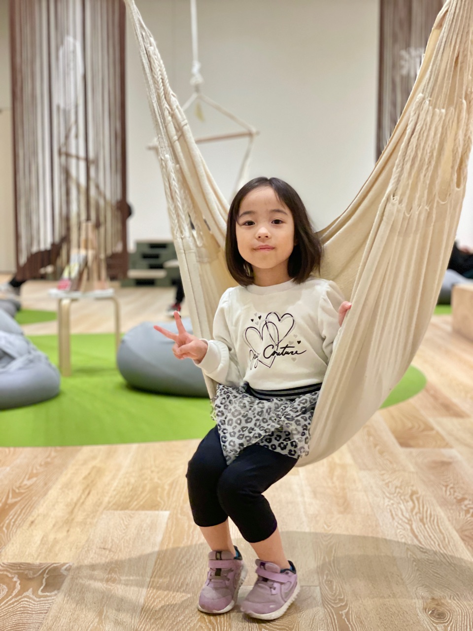 こんな感じでリラックスできる部屋もあったりで、ハンモックに乗ったり、床のマットの上で寝そべりながら本を読む事ができます↓