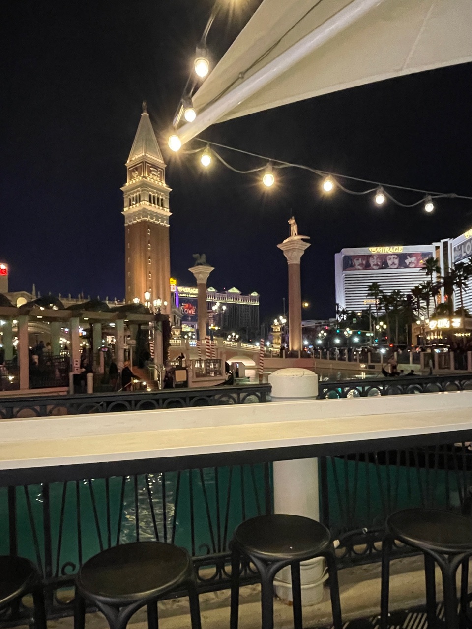 ハイトップカウンターも、ベネチアンホテルの運河沿いでボートが行ったり来たり...🚣♂️