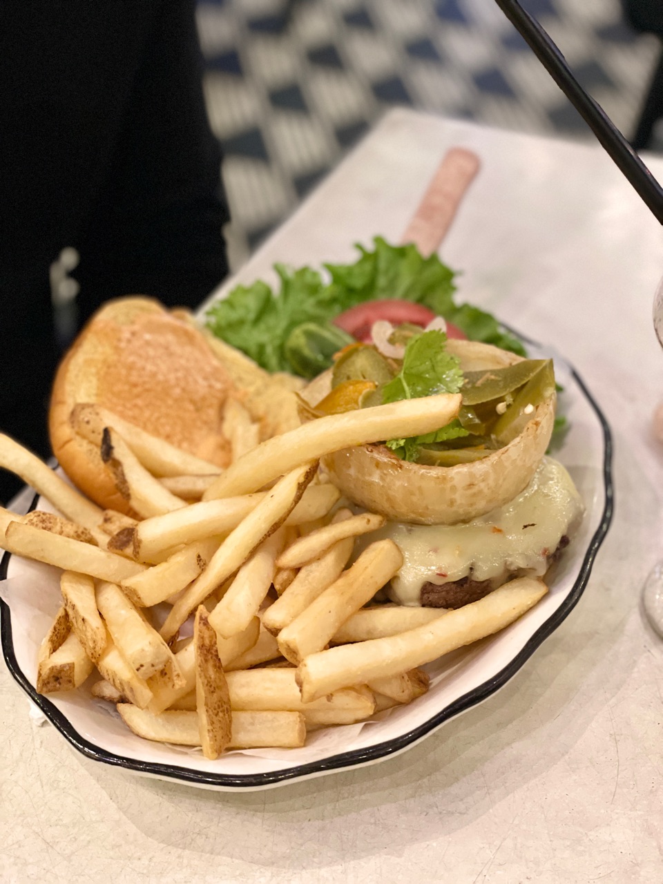 大きなバーガーとサンドイッチなので、半分ぐらい持ち帰りましたが、ソース用のリッドも付けてくれて、サーバーさんはヒスパニック系でサービスも人柄もよく面白い男性でした。