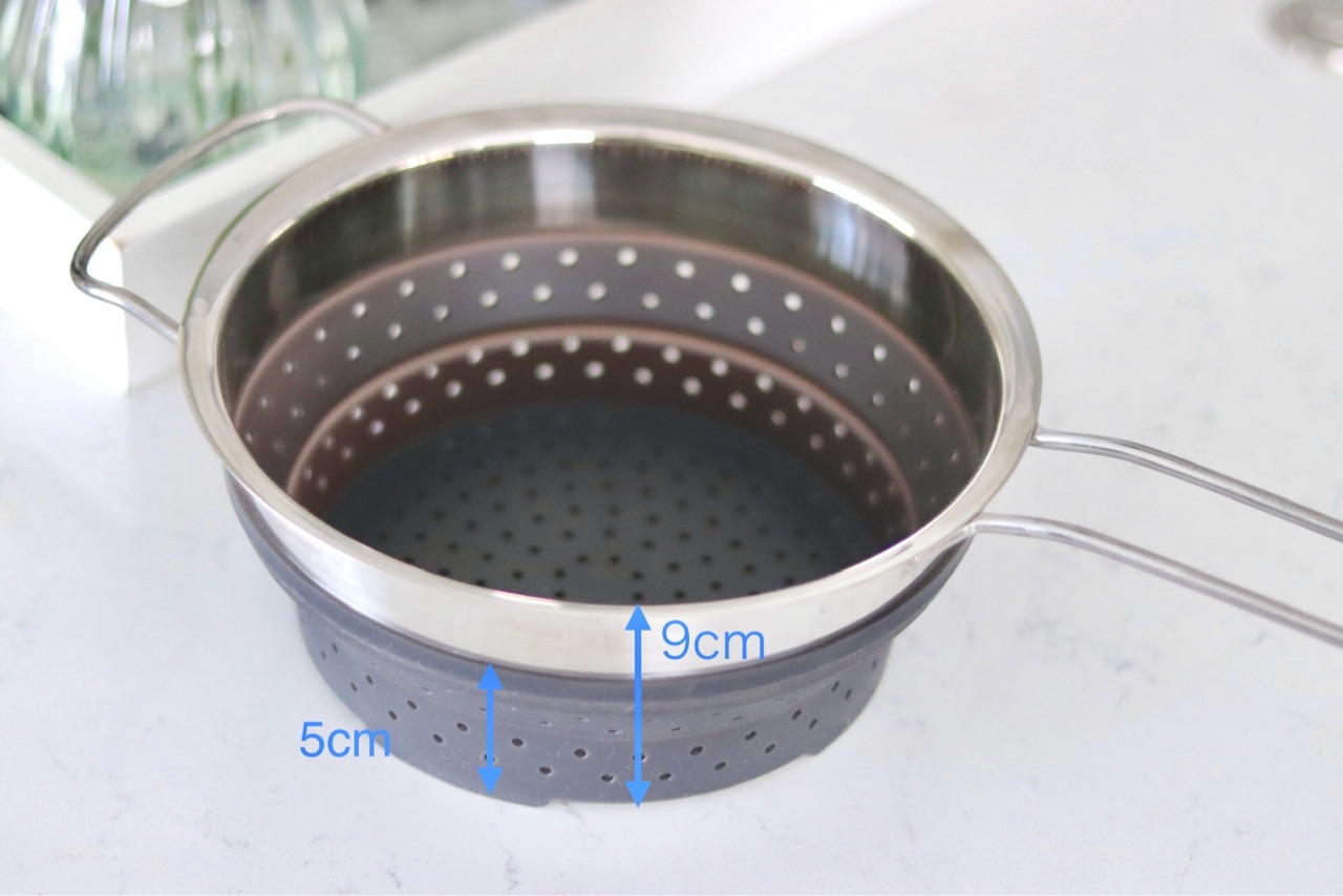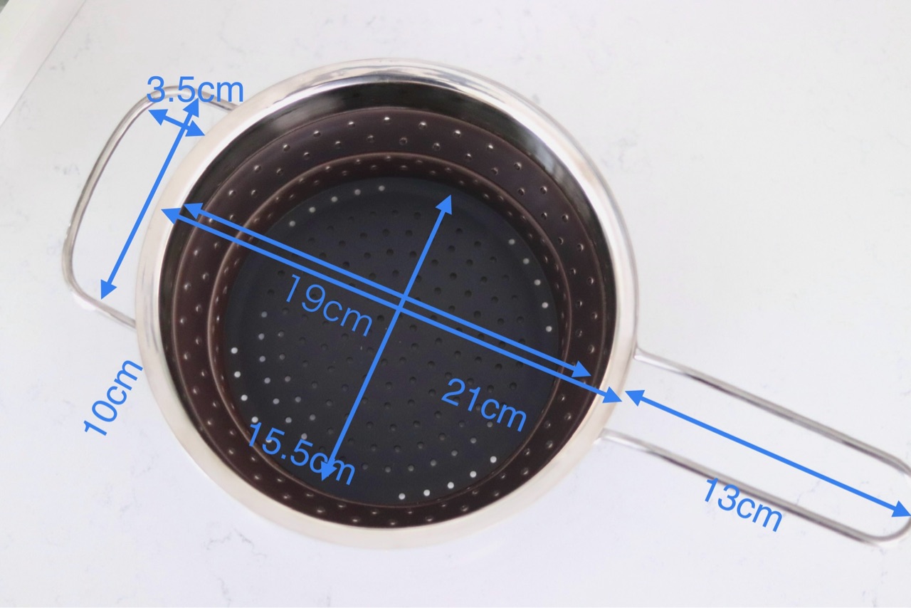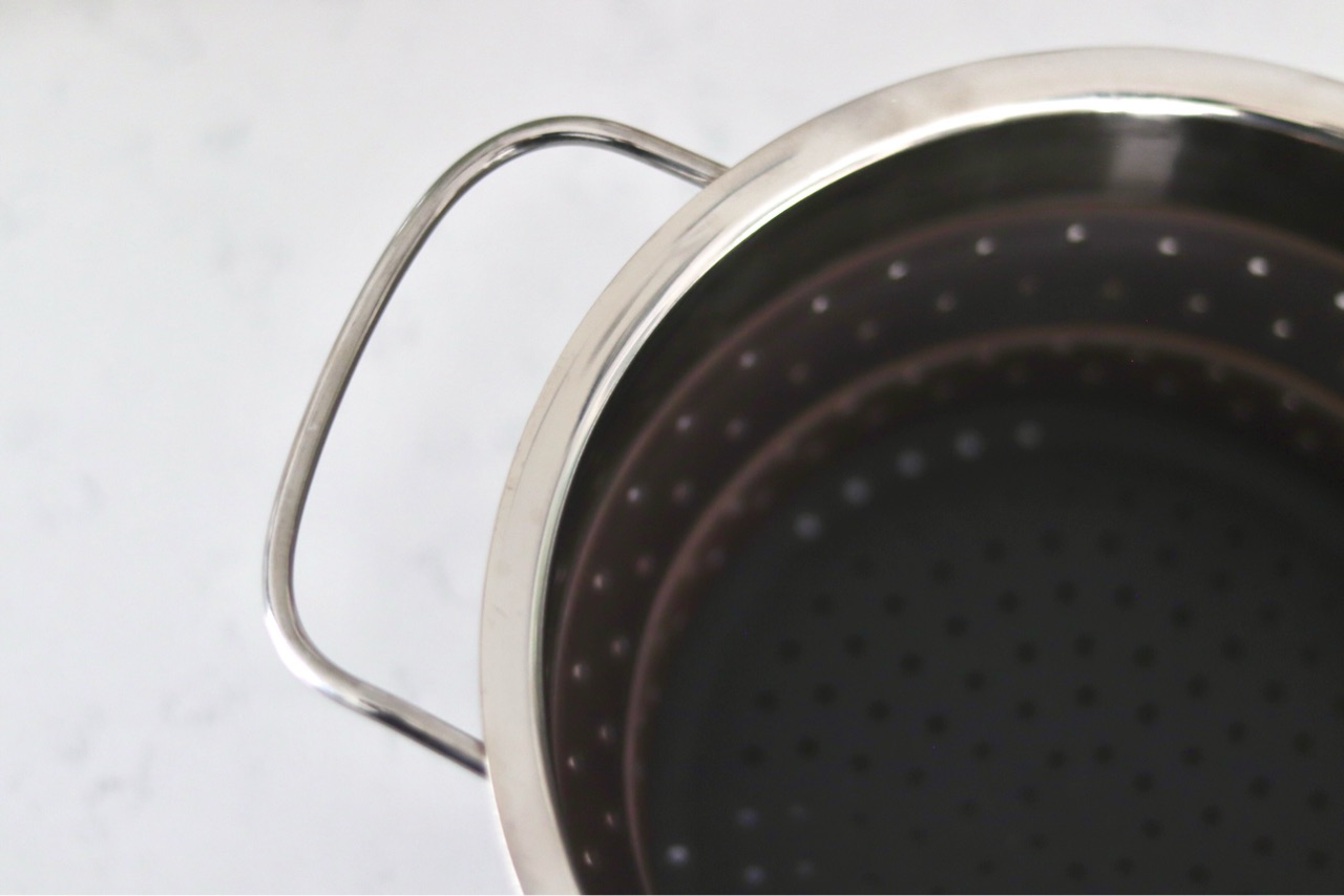 半分の状態では蒸し器の状態でも、完全に広げた状態ではパスタを茹でる時のインサート用に使用できます。