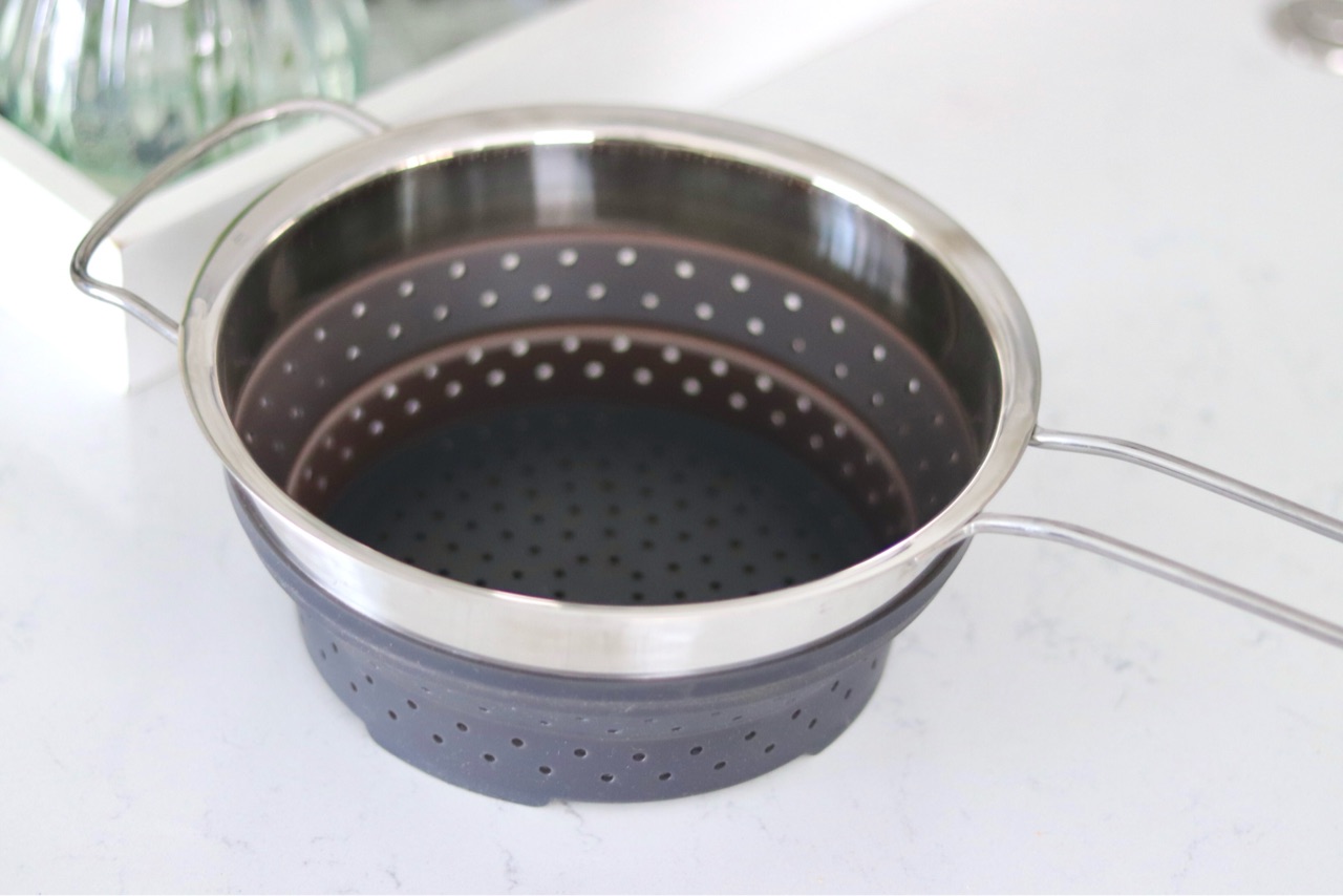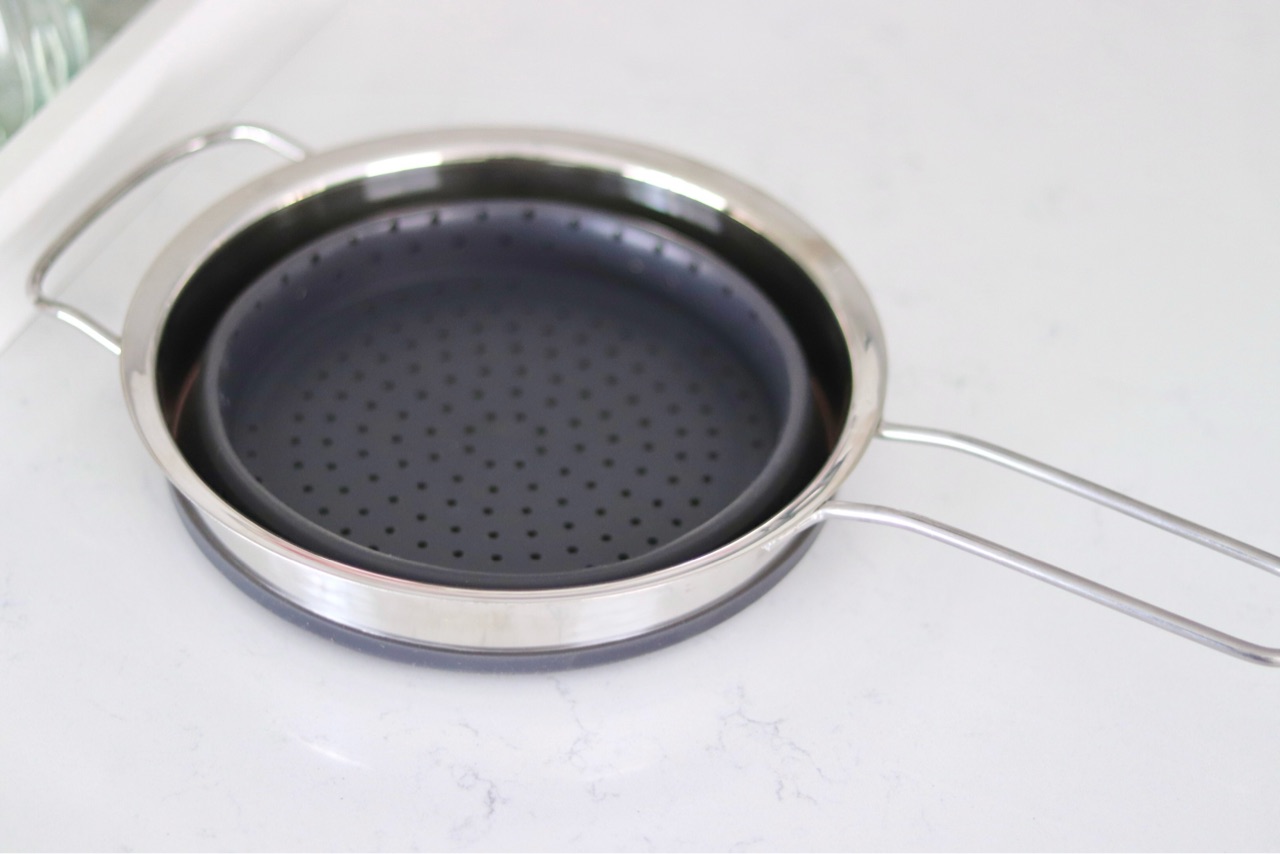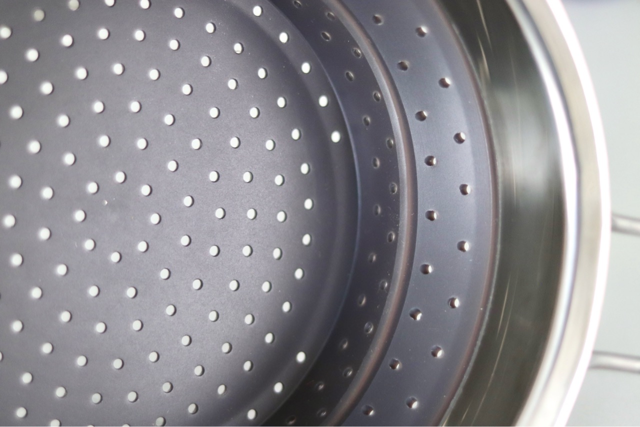 半分の状態では蒸し器の状態でも、完全に広げた状態ではパスタを茹でる時のインサート用に使用できます。