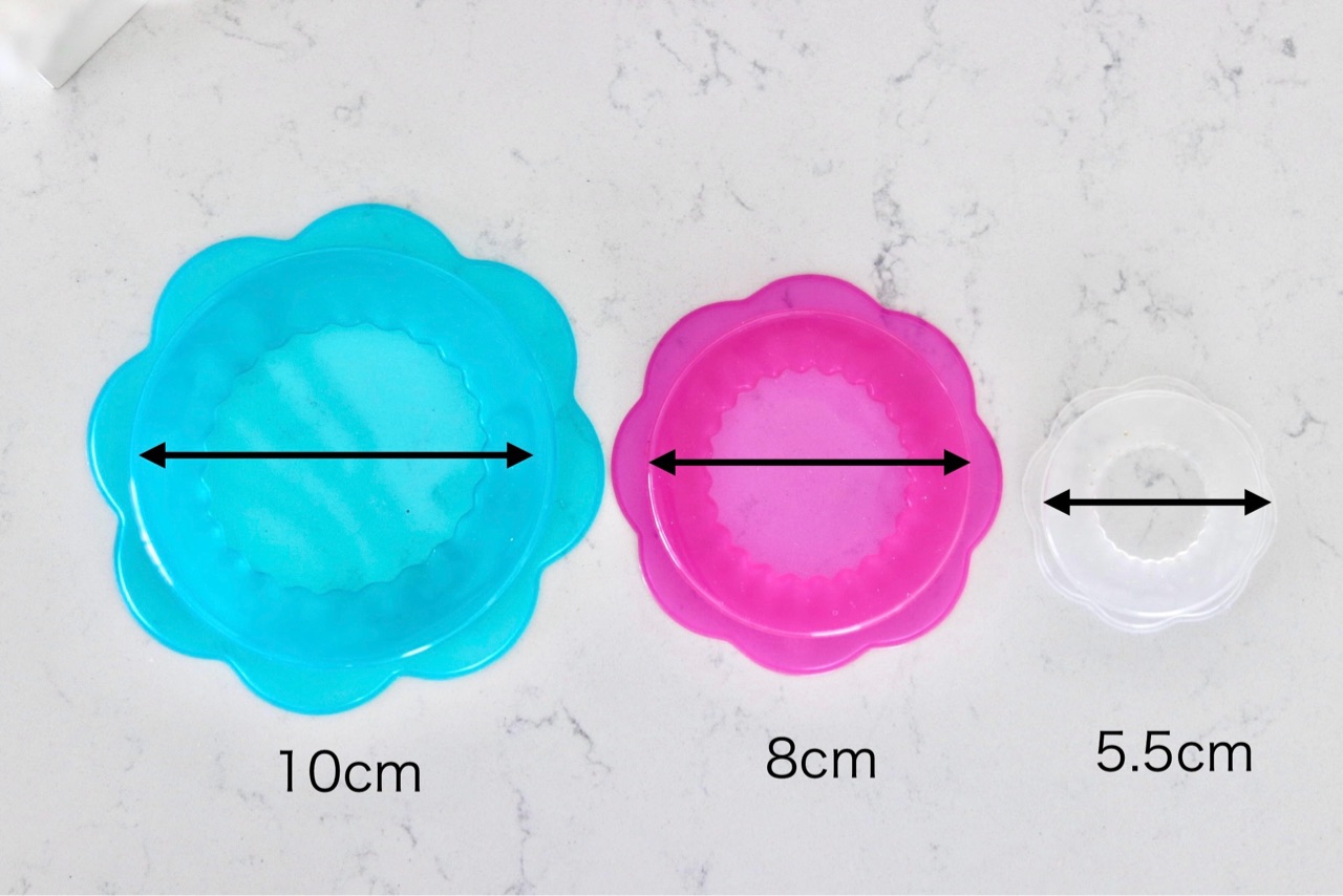 フードカバー3つのサイズのトップ部分の直径は、こちら↓