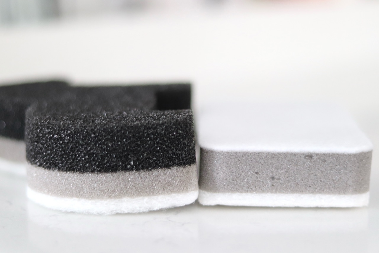 表と裏でスポンジの種類が異なり、スポンジの柔らかい面は軽い汚れを落としたり、シンク周りの水分を拭き取るときに👍