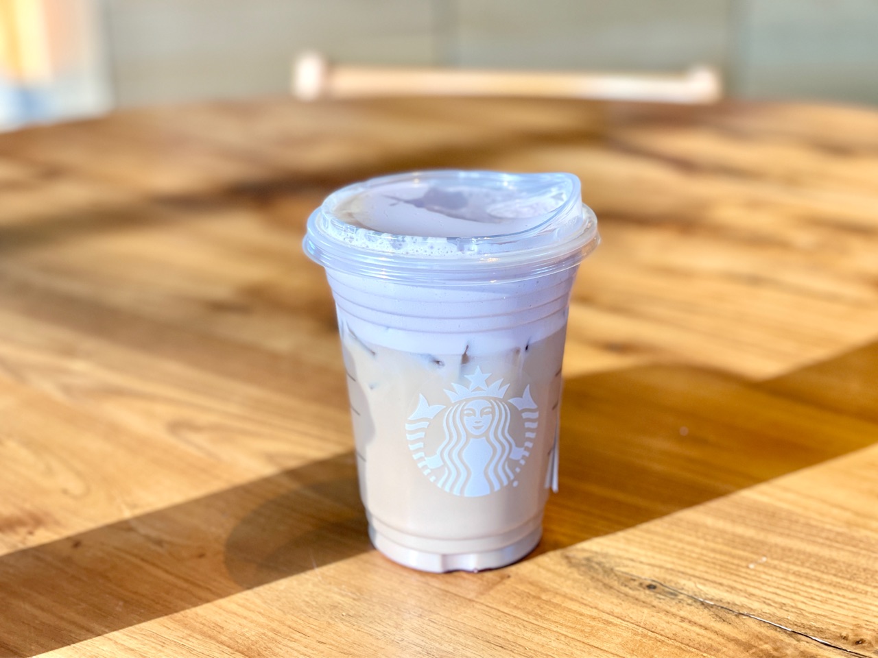 BOGOで購入したもう1つは、Iced Lavender Oatmilk Latte。