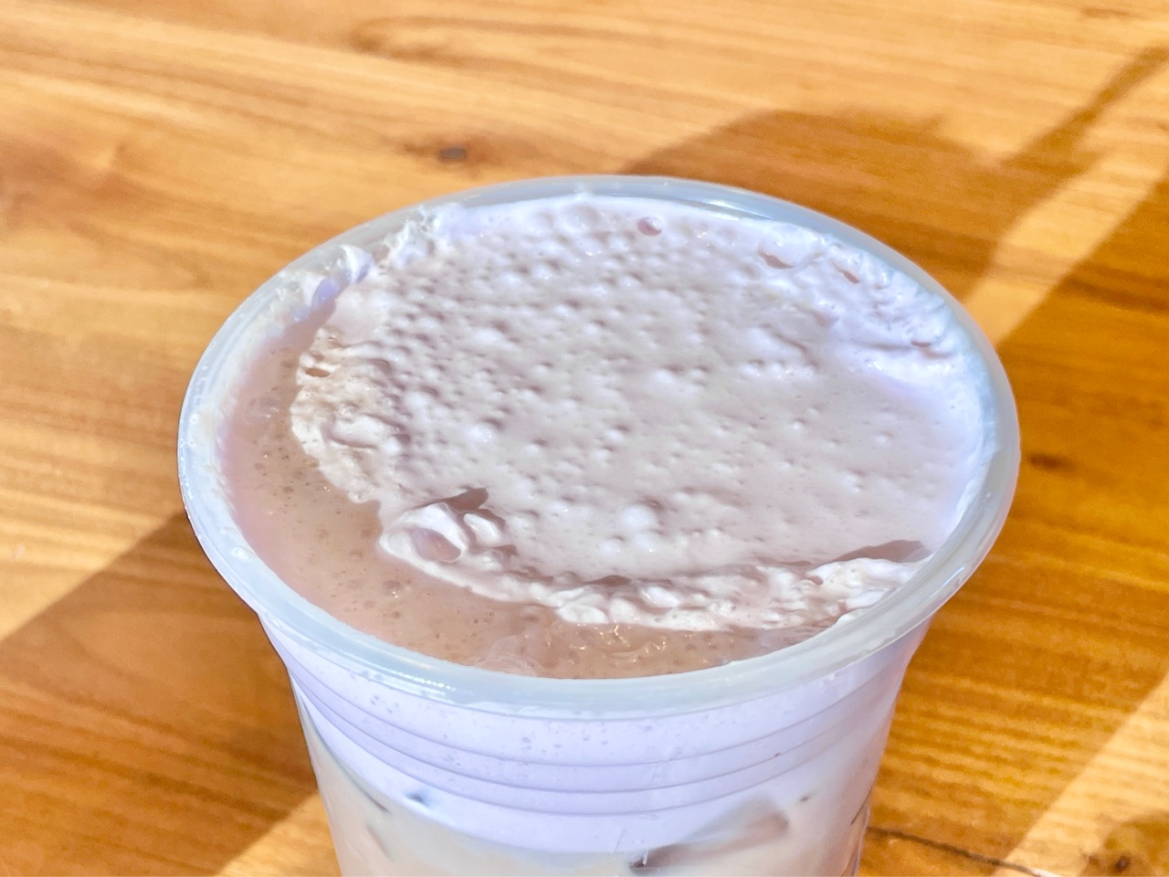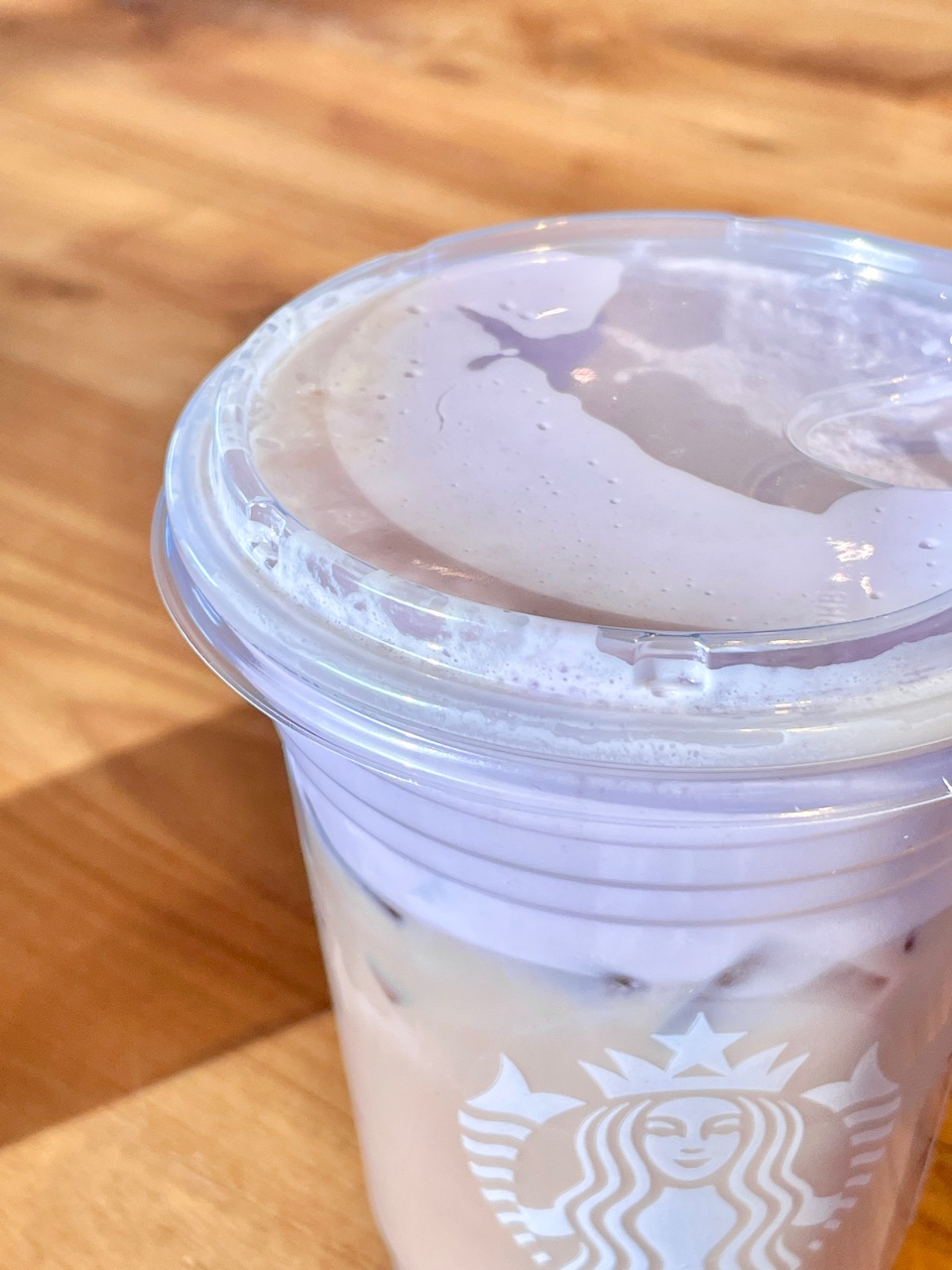 Iced Lavender Oatmilk Latte(ホールミルクに変更)+ラベンダーコールドフォームを乗せました。