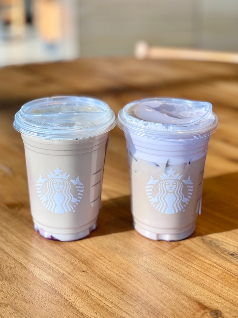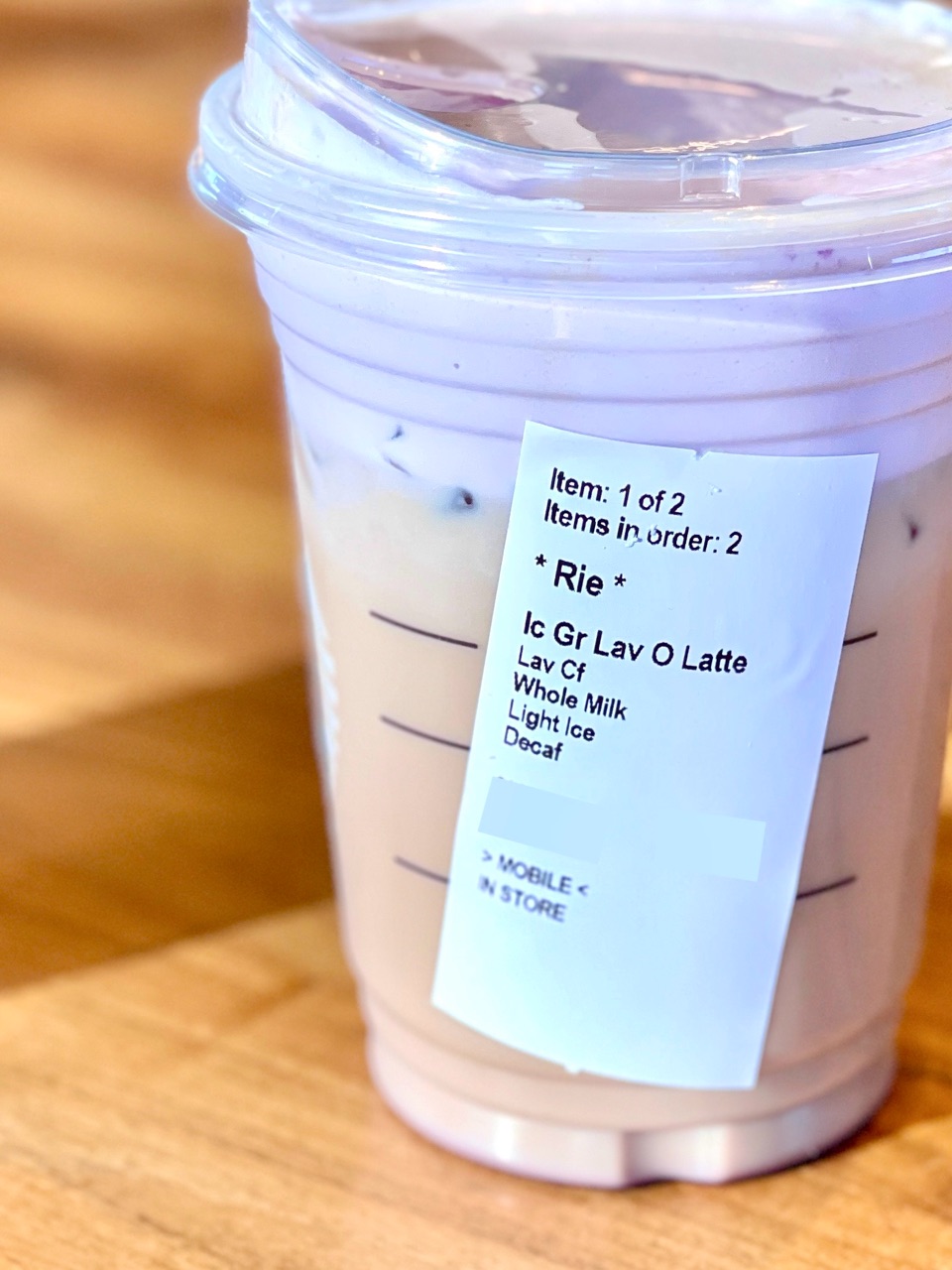 この日もBOGO DAYだったので、もう1つはIced Lavender Oatmilk Latte(ホールミルクに変更)の氷ぬきで。