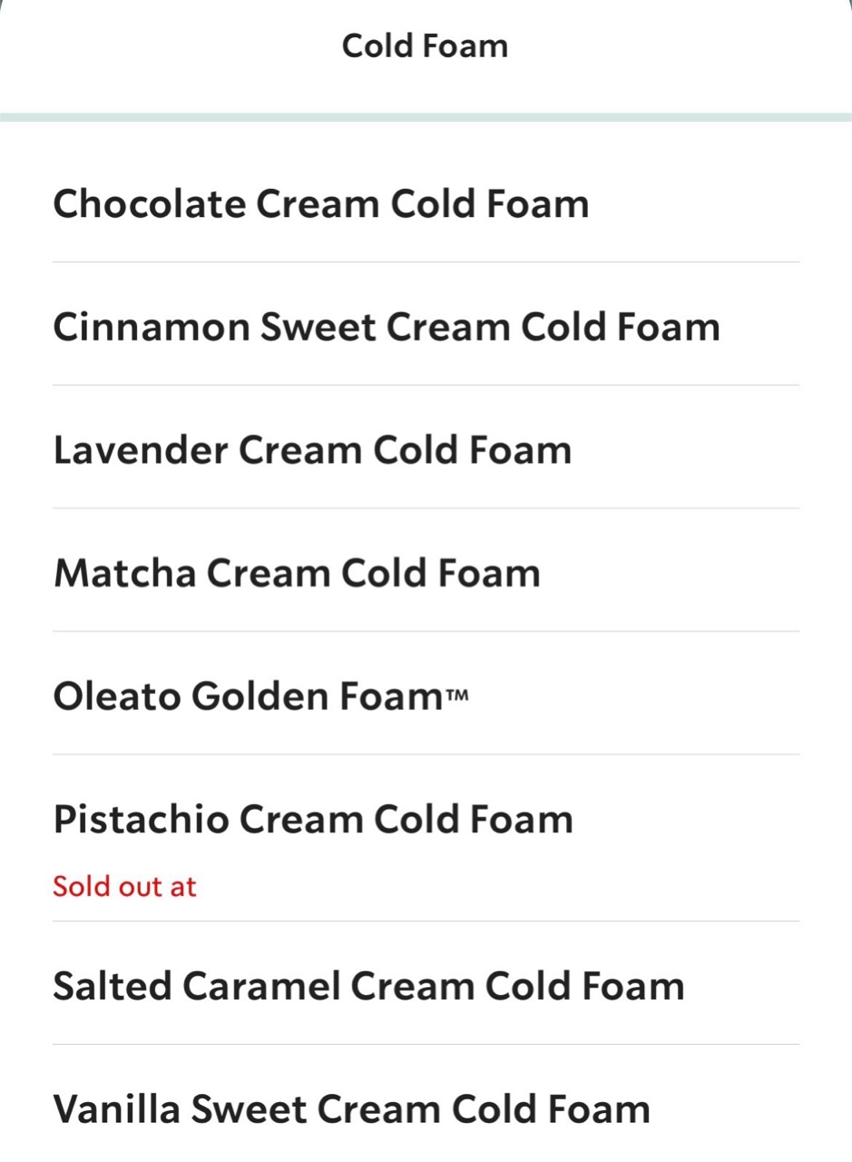 普段、コールドフォームを上に乗せてカスタマイズした事は何度もありますが、今回のメニューであるアイスの抹茶ラテにコールフォフォームを乗せてオーダーするのは初めて。