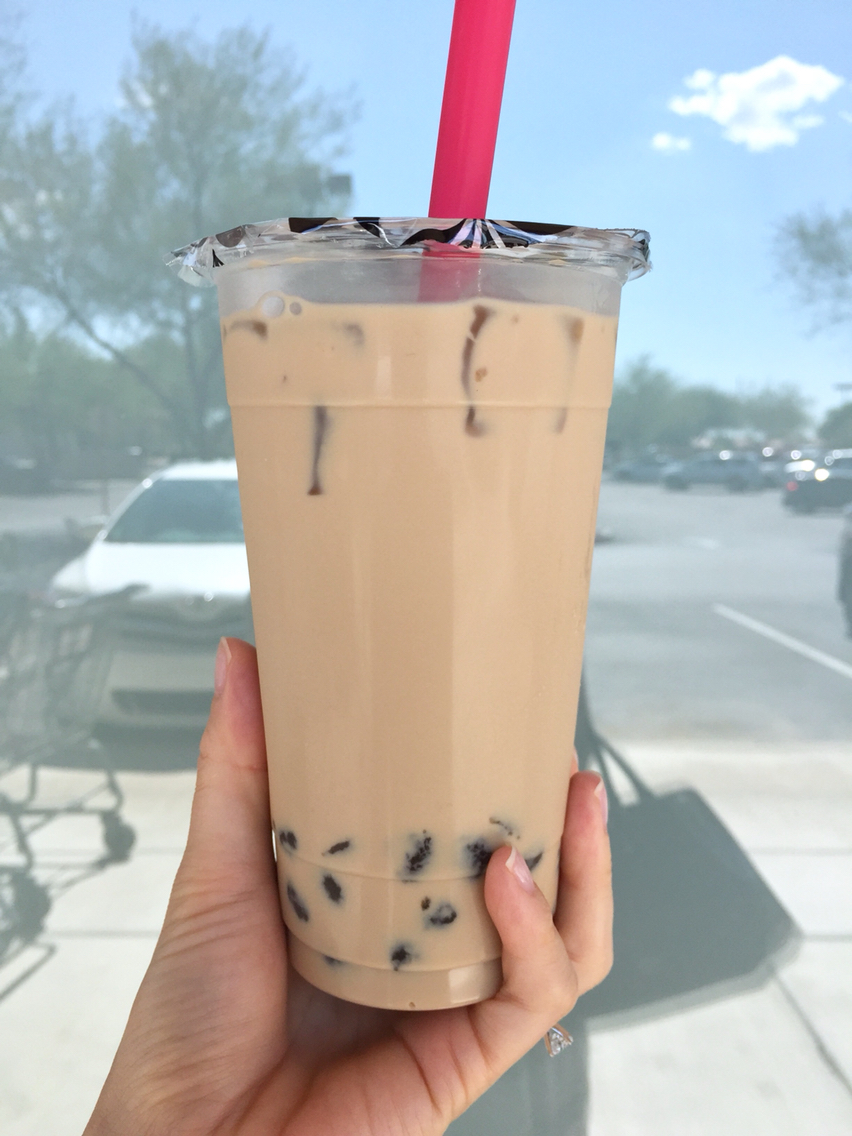 ジャスティンはアメフトの試合をずっと見ててつまらなかったので、私は近所のボバ(タピオカ)を飲みに行きました。