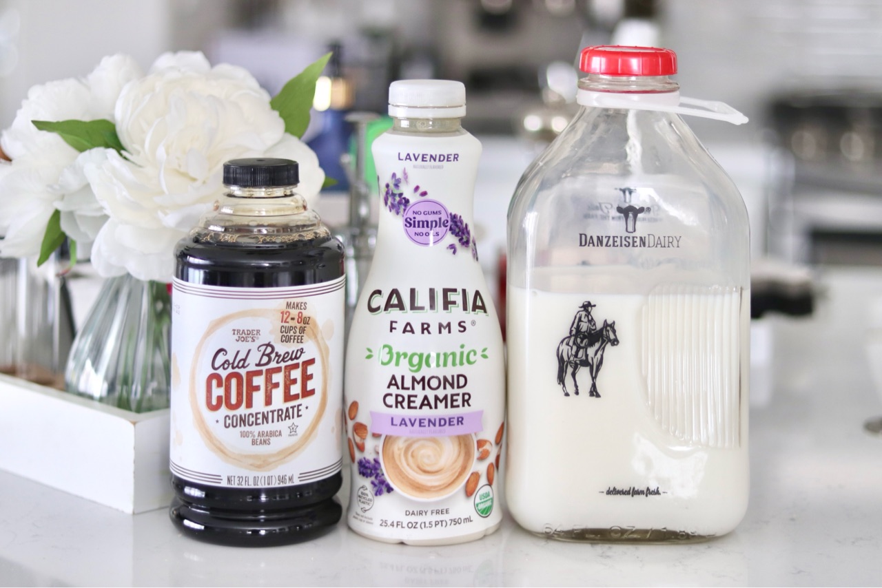 クリーマーなので、私はトレジョのコールドブリューに入れて、ラベンダーアーモンドクリーマーを1スプラッシュ入れます。