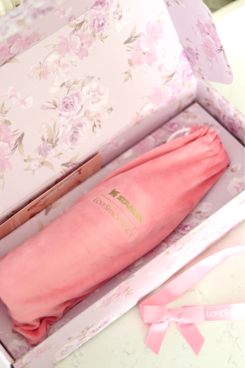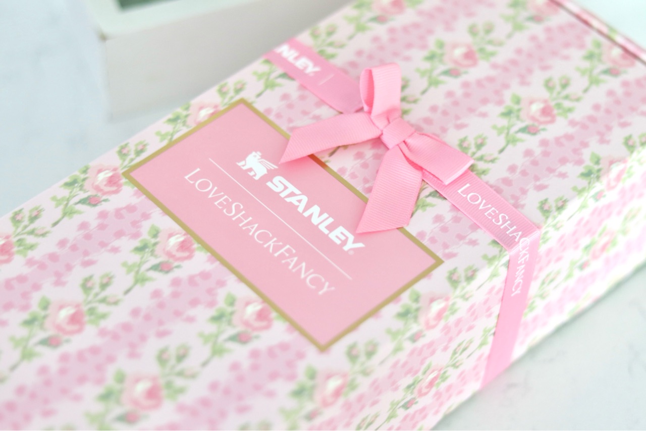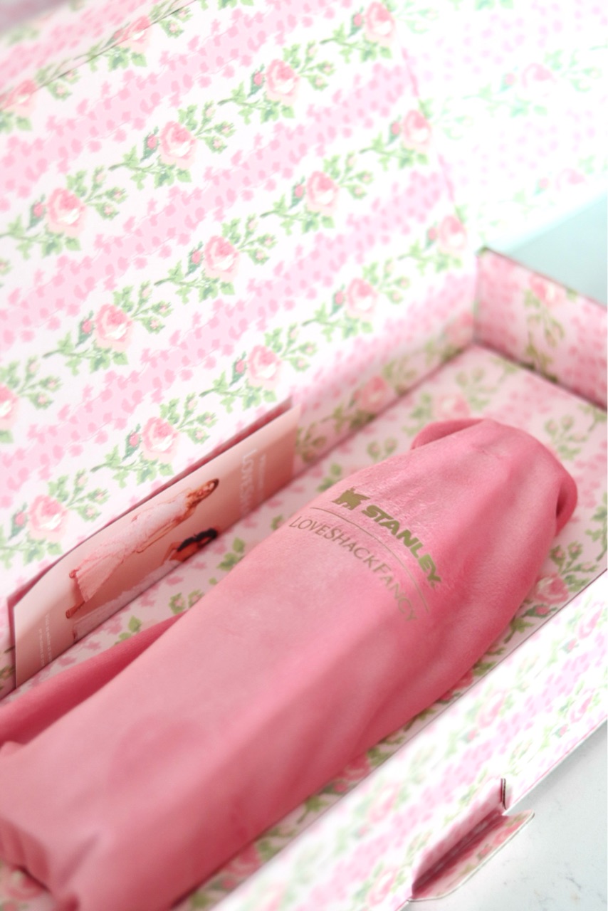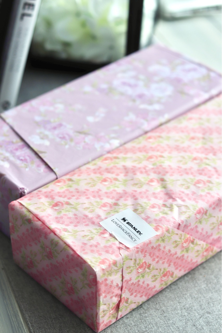 Love Shack Fancyって、ピンクの花柄やリボンが描かれた商品が多いのですが、スタンリーとのコラボは包装紙まで可愛かった🎀