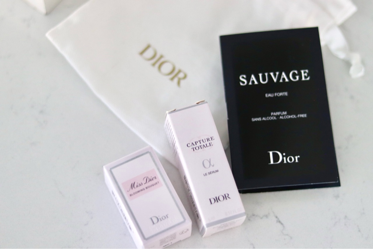 オンラインでは2種類のサンプルが毎回選べるので、Sauvageのフレグランスサンプル、capture totaleのセラムのサンプル、そしてMiss Diorのミニサイズフレグランス(メンバーステータスによってミニ香水が毎回付いてきます)をいただきました。
