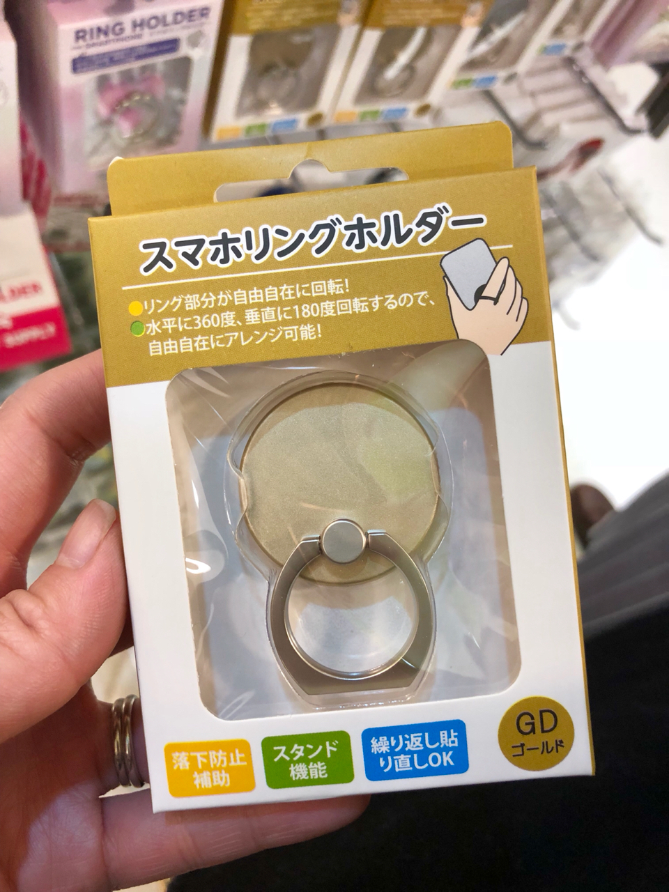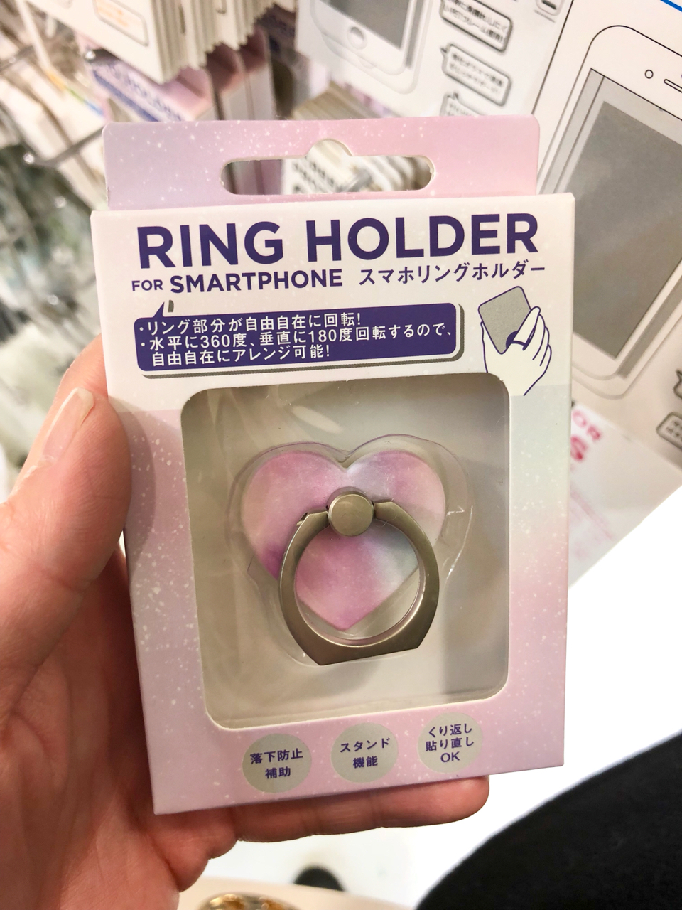 このリングホルダーで、スマホを落とさない様に気をつけたいと思います。